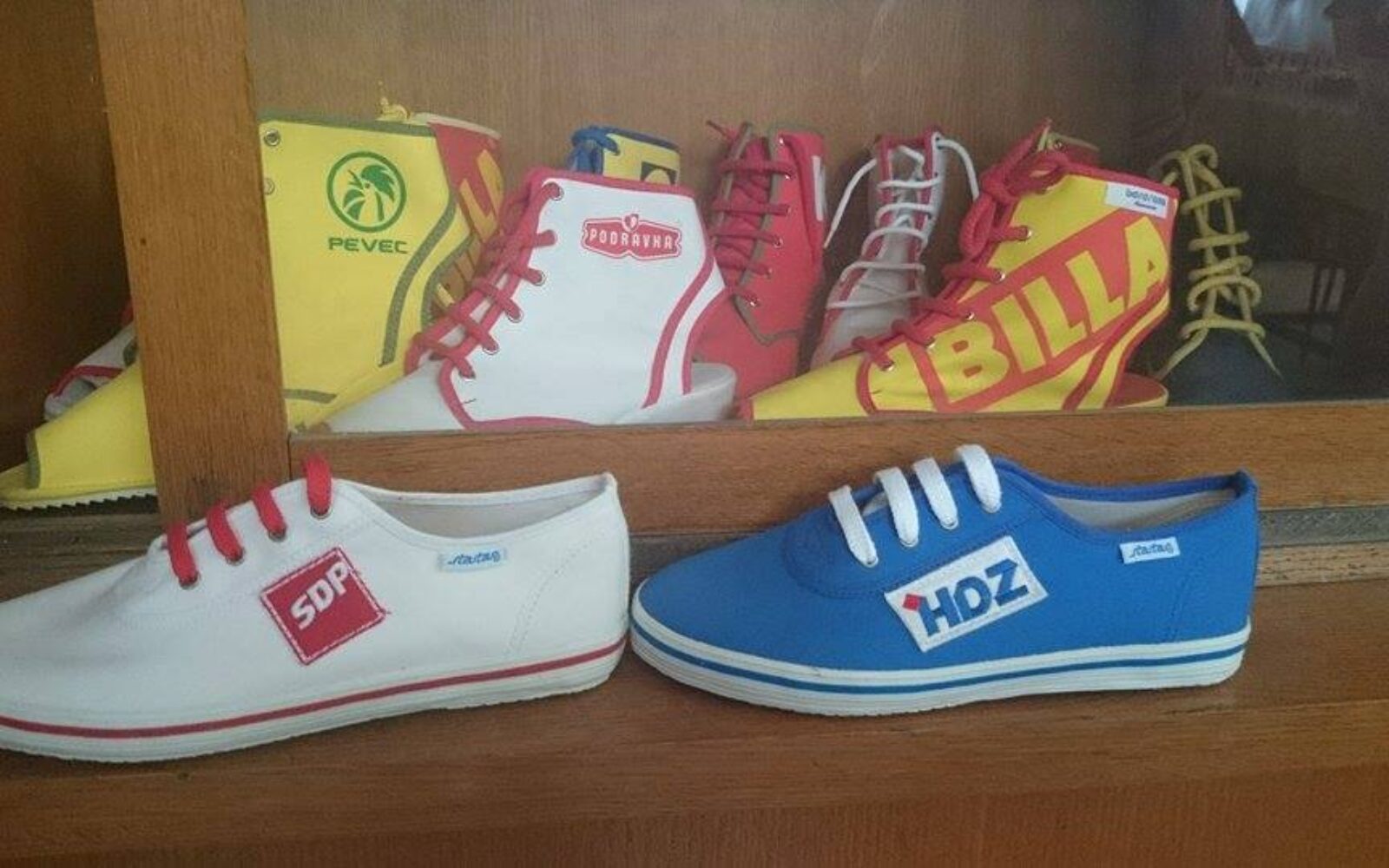 Startasice s logom SDP-a i HDZ-a, koje su osvanule na facebook stranici HTV-ove emisije Hrvatska uživo, nisu proizvedene ciljano kako bi bile ponuđene najvećim strankama uz poziv neka domoljubnom gestom otkupe veći broj ovih tenisica te obuju svoje mnogoljudne stranačke ešalone koji će idućih tjedana kroz predizbornu kampanju istrčati stotine kilometara obilazeći i najzabitije kutke Lijepe naše u borbi za glasače.