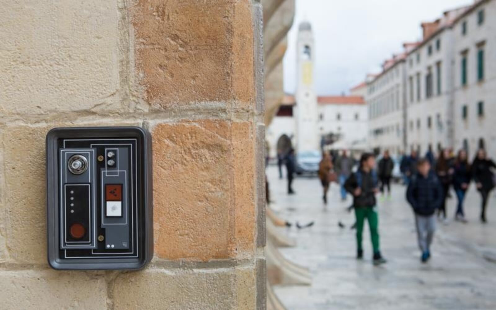 Uoči početka snimanja osmog nastavka američkog znanstveno-fantastičnog spektakla Star Wars od 9. do 16. ožujka u Dubrovniku, zaštitari čuvaju filmski set na Stradunu.