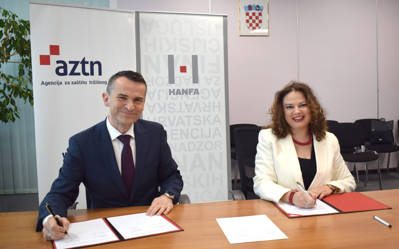 suradnja Potpisan sporazum o suradnji AZTN-a i Hanfe Dr.sc. Mirta Kapural, dipl.iur, predsjednica Vijeća za zaštitu tržišnog natjecanja i dr.sc. Ante Žigman, predsjednik Upravnog vijeća Hrvatske agencije za nadzor financijskih usluga, potpisali su sporazum o suradnji.
