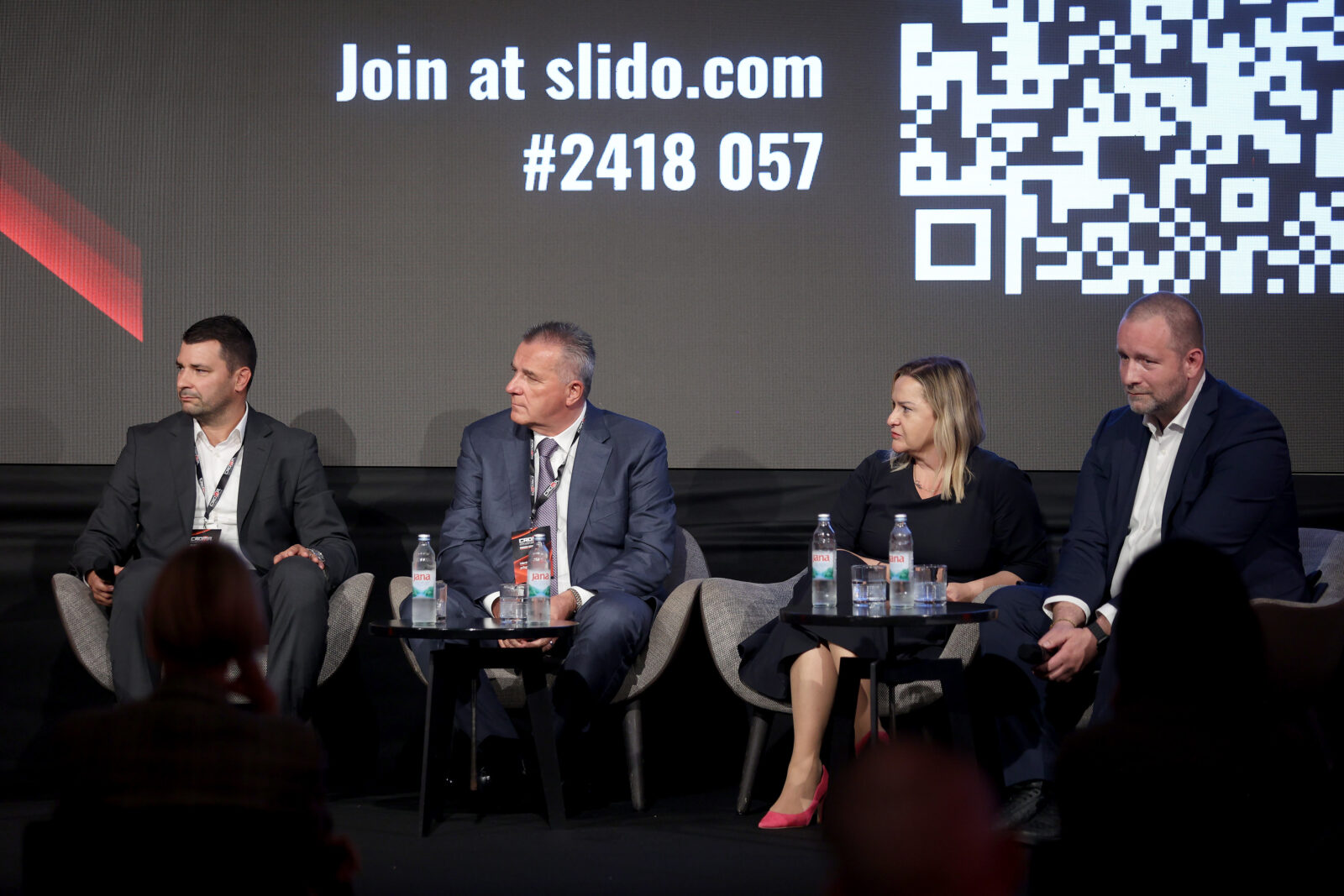 Na panelu ’Kapital & IPO’ Ivan Šantorić (Tokić Grupa), Branislav Brizar (ING-GRAD), Ivana Gažić (ZSE) i Darko Horvat (Bosqar) raspravljali su o tome kako steći povjerenje ulagača, izgraditi otporno poslovanje i osigurati stabilnost u ‘godini IPO-a’/ Foto: Nel Pavletic/PIXSELL