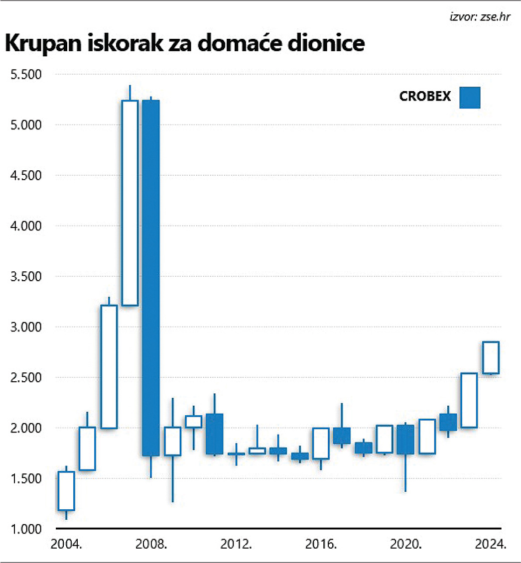 A možda je tako i bolje, jer za razliku od vremena kada se Poslovni dnevnik počeo redovito pojavljivati na kioscima, ostvareni je rast lišen bilo kakve euforije i masovnog priljeva svježeg kapitala. Kako bilo, CROBEX je još 2023. godine, nakon dugo vremena, napokon iskoračio iz relativno uskog raspona i dosegao najvišu razinu od krizne 2008. godine.