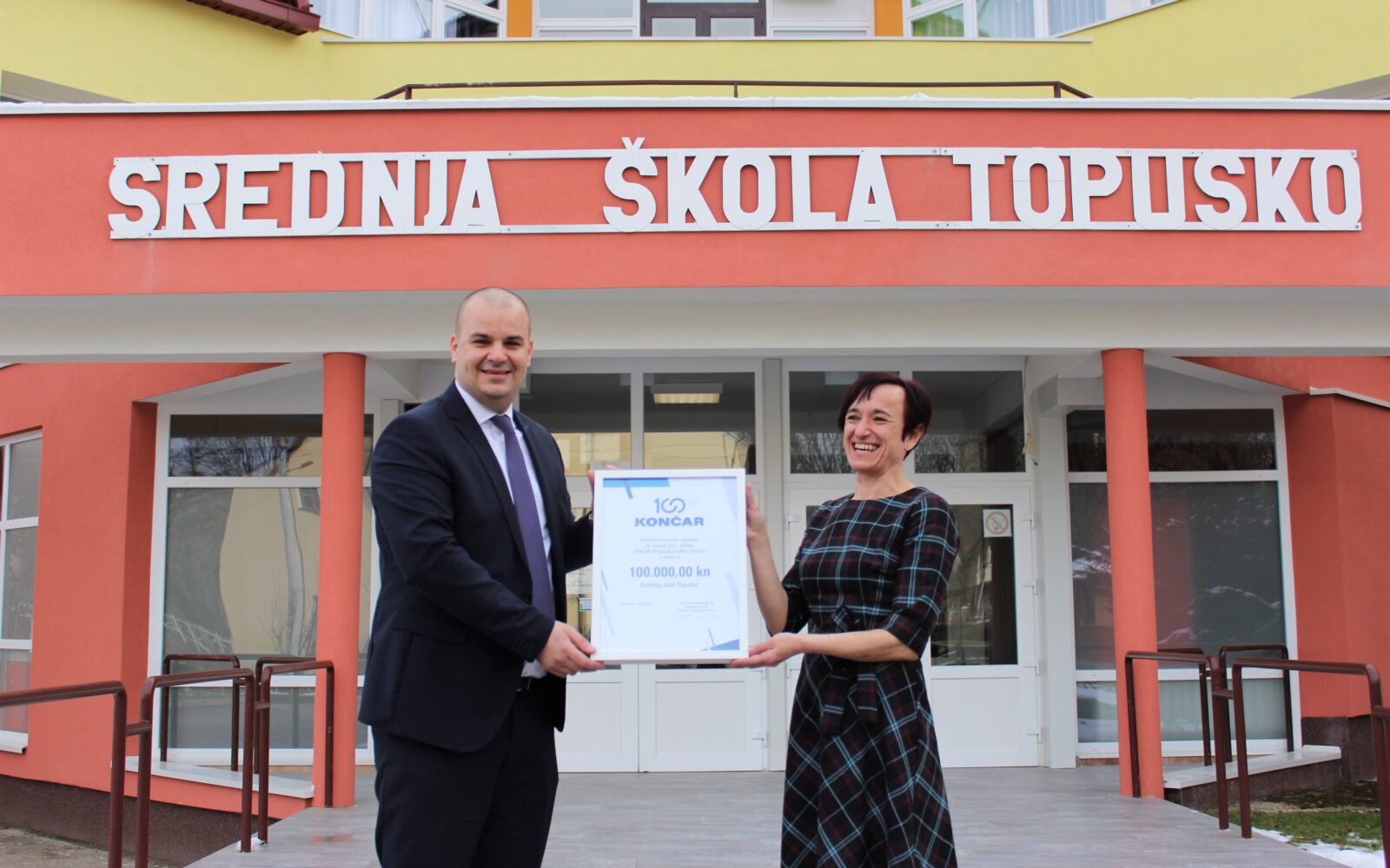 Kako bi pomogla učenicima iz potresima pogođenih područja te im pružila podršku u nastavku školovanja, Grupa KONČAR, regionalni lider na području elektroindustrije, odlučila je povodom obilježavanja svoje 100. obljetnice donirati 100.000 kuna Srednjoj školi Topusko. Donaciju je u ime Grupe Končar ravnateljici Željki Gajdek uručio Josip Lasić, član Uprave.