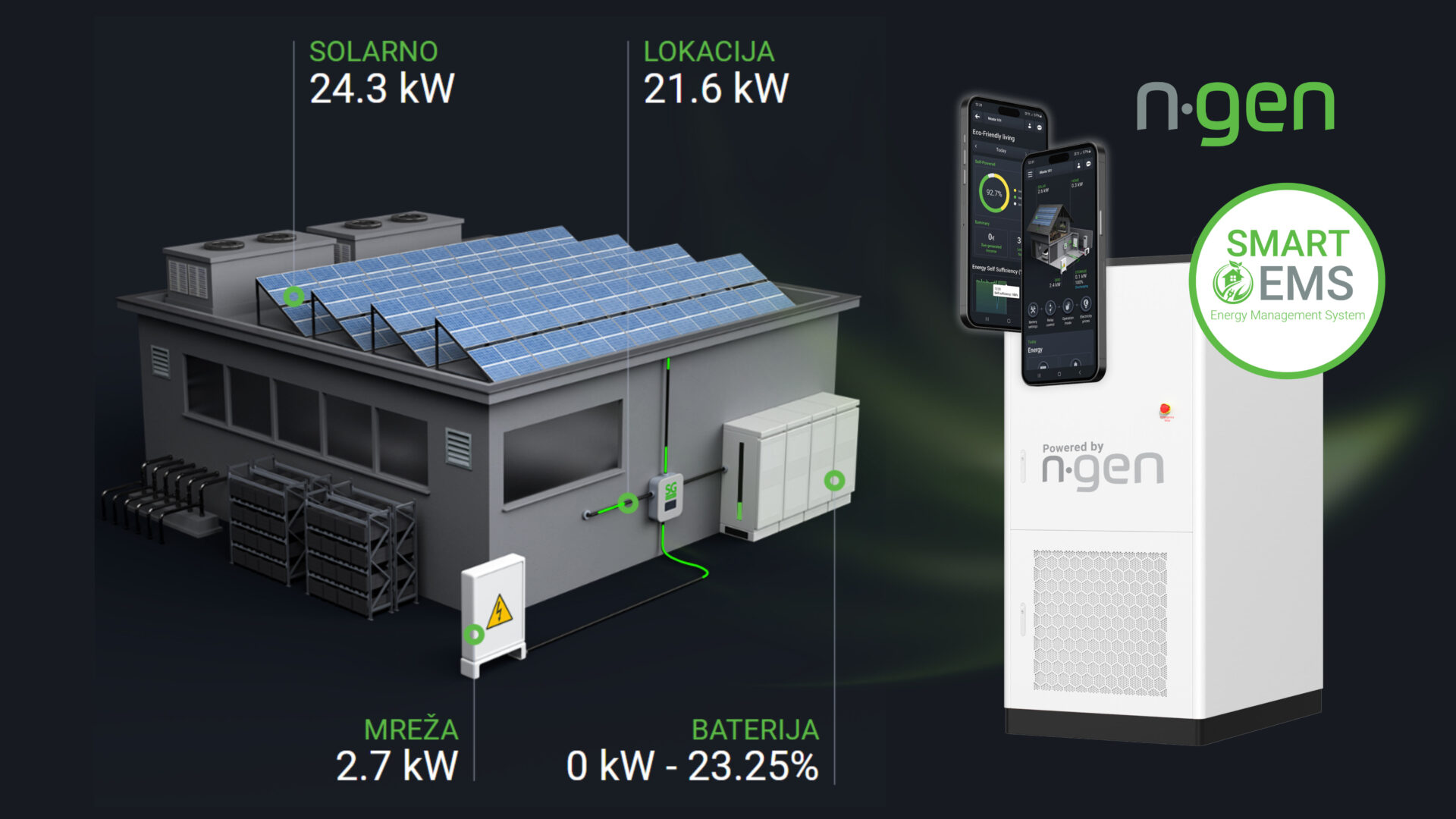 Takav model razvija NGEN grupa kroz platformu SG Connect, koja djeluje kao digitalno središte upravljanja energijom na lokaciji korisnika. Platforma povezuje solarne elektrane, potrošnju, baterijske sustave i mrežu te omogućuje automatizirano upravljanje u stvarnom vremenu. Korisnici dobivaju jasan pregled svih energetskih tokova i mogućnost optimizacije troškova kroz jedno rješenje, bez potrebe za više različitih sustava.