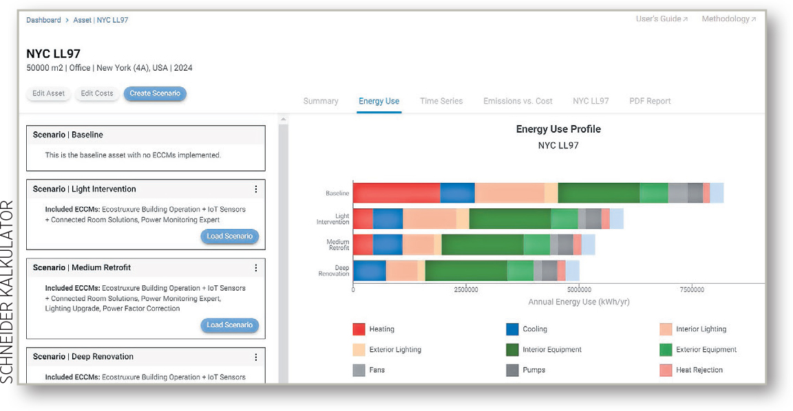 S bazom podataka od gotovo 500.000 modela performansi zgrada, koja pokriva različite vrste, veličine i lokacije zgrada, kalkulator za dekarbonizaciju omogućuje korisnicima procjenu ugljičnog i financijskog povrata investicija u ECCM-ove te usporedbu njihovih puteva dekarbonizacije s kaznama koje propisuje Local Law 97 u New Yorku ili s putevima praćenja ugljičnog rizika (CRREM).