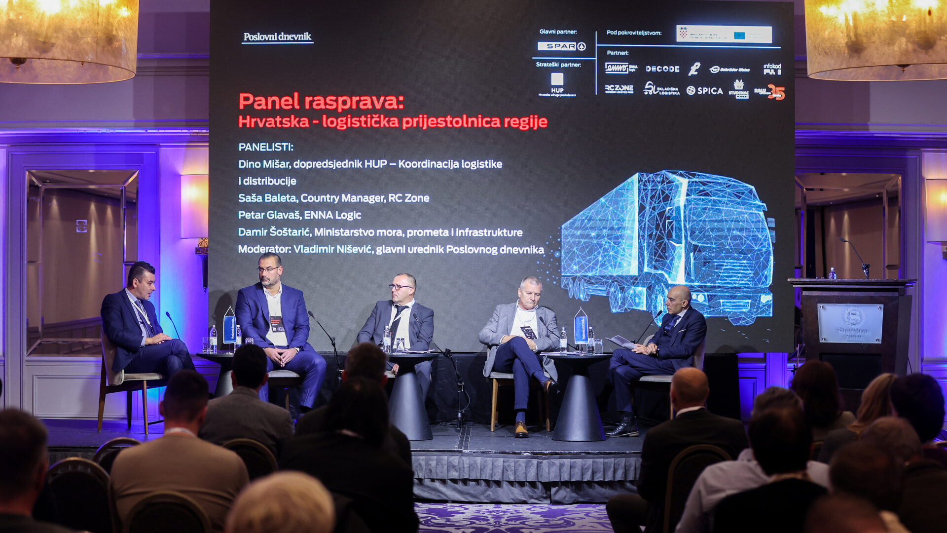 Svjetska banka rangirala je Hrvatsku na najbolju poziciju u regiji prema Indeksu logističke uspješnosti (LPI) za 2023. godinu. U 2024. godini nastavila se izgradnja logističkih centara s dodatnih 200 tisuća četvornih metara skladišnih i logističkih prostora samo u Zagrebu i okolici. Hoće li to zadovoljiti potrebe tržišta, koji su trendovi i zahtjevi korisnika tih prostora, koliko vrijede te investicije i što možemo očekivati u godinama pred nama, na panelu “Hrvatska – logistička prijestolnica regije” na konferenciji Poslovnog dnevnika raspravljali su Dino Mišar, dopredsjednik HUP-a zadužen za koordinaciju logistike i distribucije Saša Baleta, country manager RC Zonea u Hrvatskoj, Leon Dolušić, voditelj operative u ENNA Transportu te Damir Šoštarić, ravnatelj Uprave za EU fondove i strateško planiranje, Ministarstvo mora, prometa i infrastrukture.