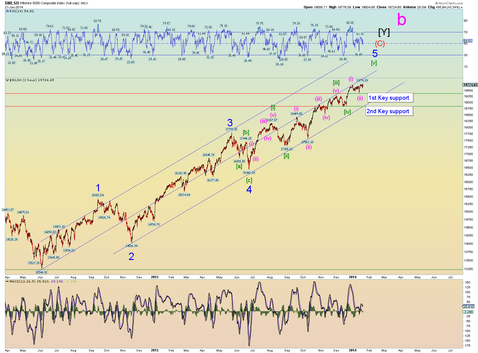 ja mislim da se motamo oko vrha. I ne smo iz tehničkih razloga. Možda još i više iz fundamentalnih. Postojeća razina indeksa bazirana je na pretpostavci da će nakon toliko dolara izbačenih od strane FED-a uslijediditi inflacija. I tu je nastupio problem. Nema inflacije, a indeklsi su za 20-ak postotnih poena premašili fundamentalni rast. Zato je prije moguće očekivati korekciju 15-20% nego li daljni rast.