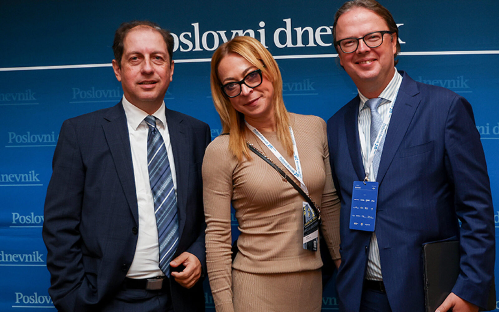 Glavni urednici Poslovnog dnevnika i Večernjeg lista, Vladimir Nišević i Dražen Klarić, s predsjednikom Uprave Poštanke banke Markom Badurinom/MATIJA HABLJAK/PIXSELL