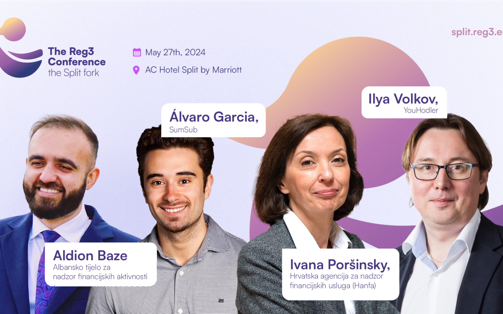 Od govornika organizatori izdvajaju Álvara Garcia, tehničkog voditelja platforme za provjeru transakcija SumSub, Ivanu Poršinsky, višu savjetnicu za zaštitu potrošača u Hrvatskoj narodnoj banci. Jedan od govornika bit će i Ilya Volkov, izvršni direktor tvrtke YouHodler te Aldion Baze, direktor nadzora DTL tržišta Albanske agencije za nadzor financijskih aktivnosti (AFSA).