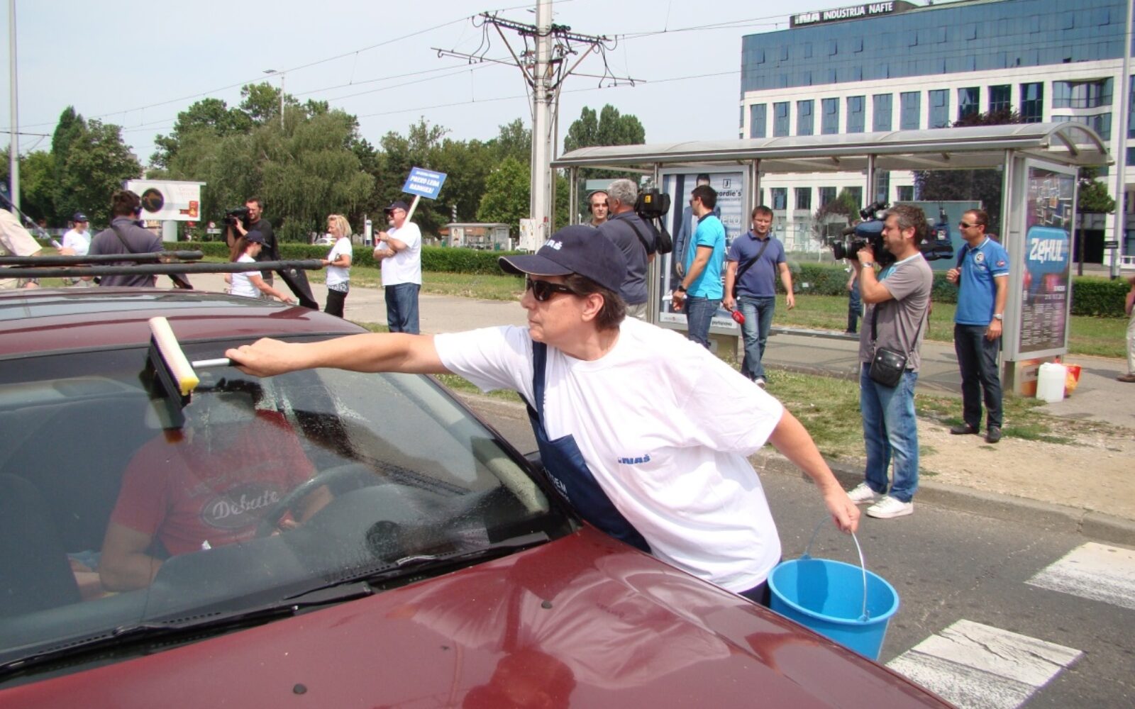 Radnici INA-e predvođeni sindikatom INAŠ i udrugama branitelja INA-e danas su u pet hrvatskih gradova besplatno oprali na stotine vjetrobranskih stakala i podijelili na tisuće guma za žvakanje kako bi ukazali na svođenje najveće hrvatske naftne kompanije na trgovca guma za žvakanje, a njenih zaposlenika na perače automobilskih stakala.
