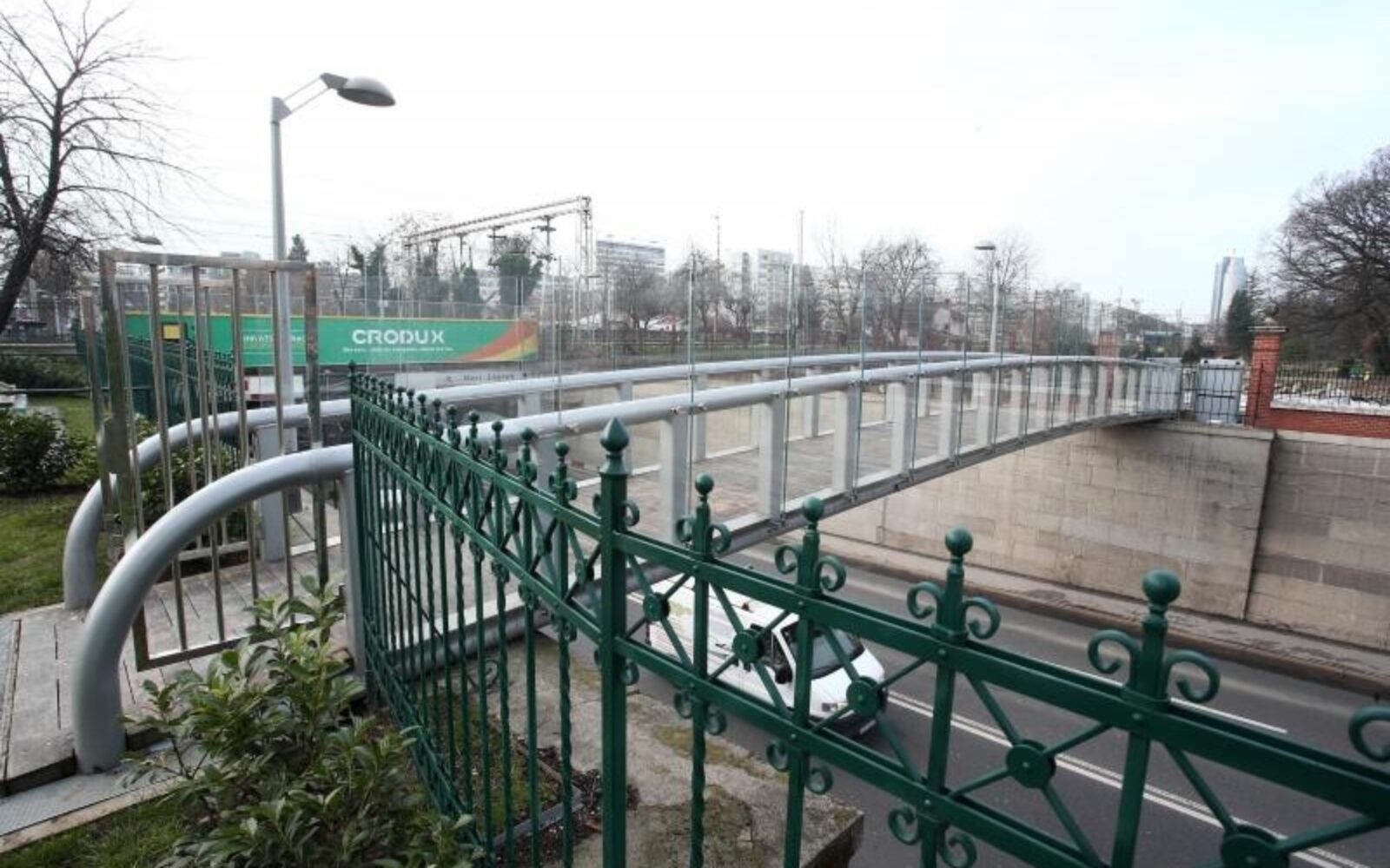 Radi se o montažnoj čeličnoj konstrukciji s ogradama od kaljenog laminiranog stakla i podnicama od hrastovine. Most je osvijetljen led-rasvjetom smještenom u rukohvate ograde. Izgrađen je paralelno s postojećim željezničkim podvožnjakom s njegove sjeverne strane, a osim praktične funkcije, uspostave pješačke komunikacije između Botaničkog vrta i Adrenalinskog parka, mostom se željela oplemeniti i urbanistička cjelina zagrebačke “zelene potkove”.