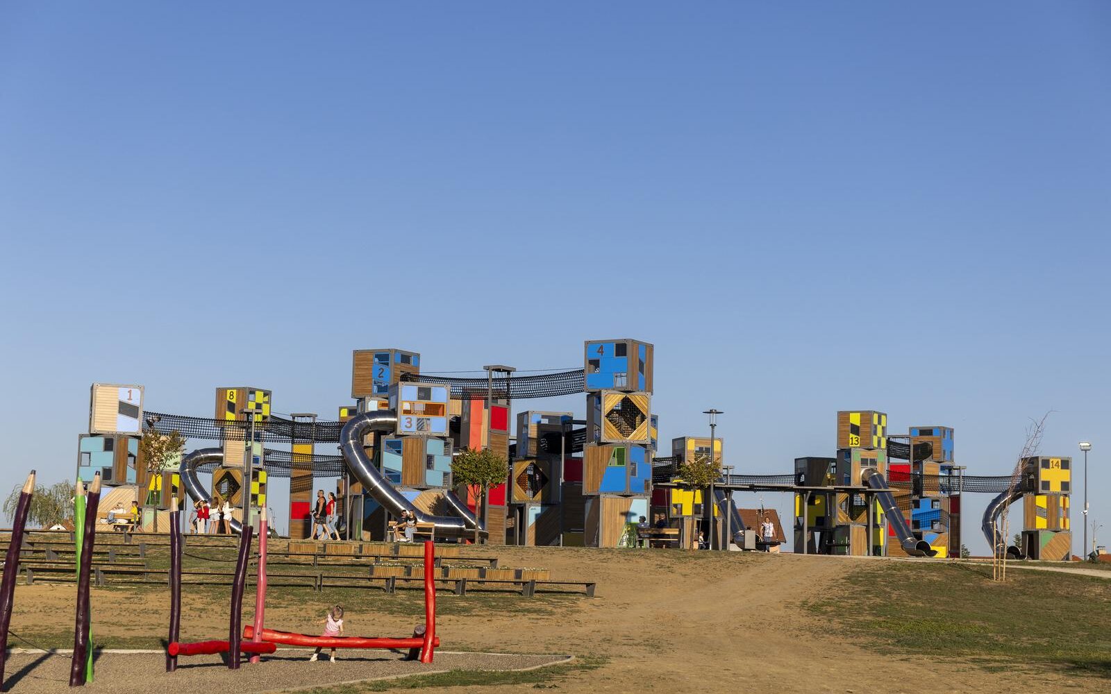 Društveno- zabavna zona obuhvaća opremljeni multifunkcionalni sportski park za djecu i mlade sa setom kula s toboganima, ljuljačkama, penjalicama i edukativnim panelima, a svi sadržaji čine moderno dječje igralište koje omogućava psiho- motorni razvoj djece kroz različite aktivnosti.