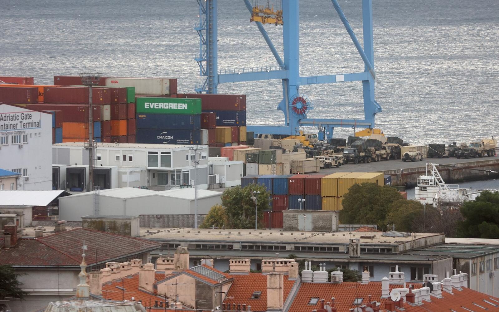 Američka vojna oprema iskrcava se na kontejnerskom terminalu Brajdica.