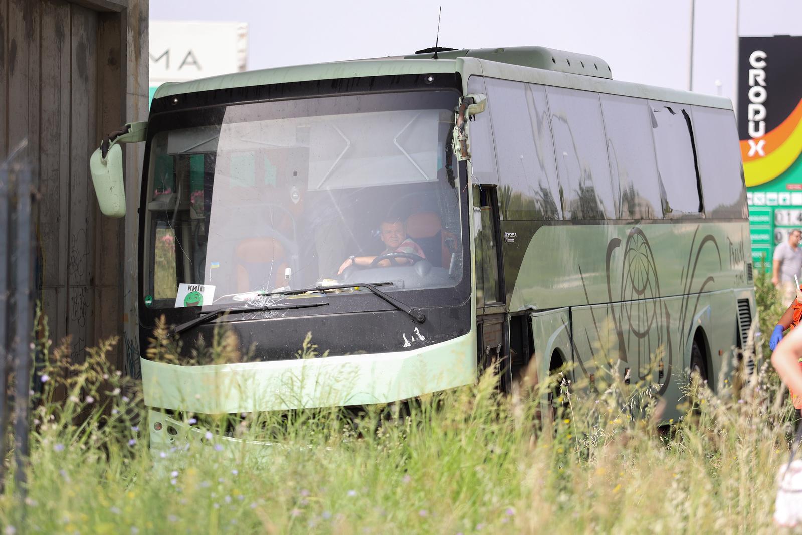 22.06.2024., Kastel Stafilic, na magistrali iz smjera Trogir-Split autobus ukrainskih tablica sletio sa ceste, na terenu sve zurne sluzbe. Photo: Ivana Ivanovic/PIXSELL