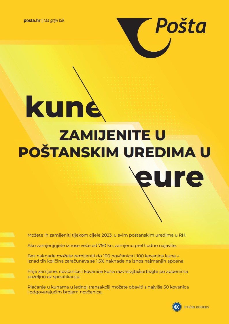 - Ako se mijenjaju iznosi veći od 750 kn, zamjenu je potrebno unaprijed najaviti