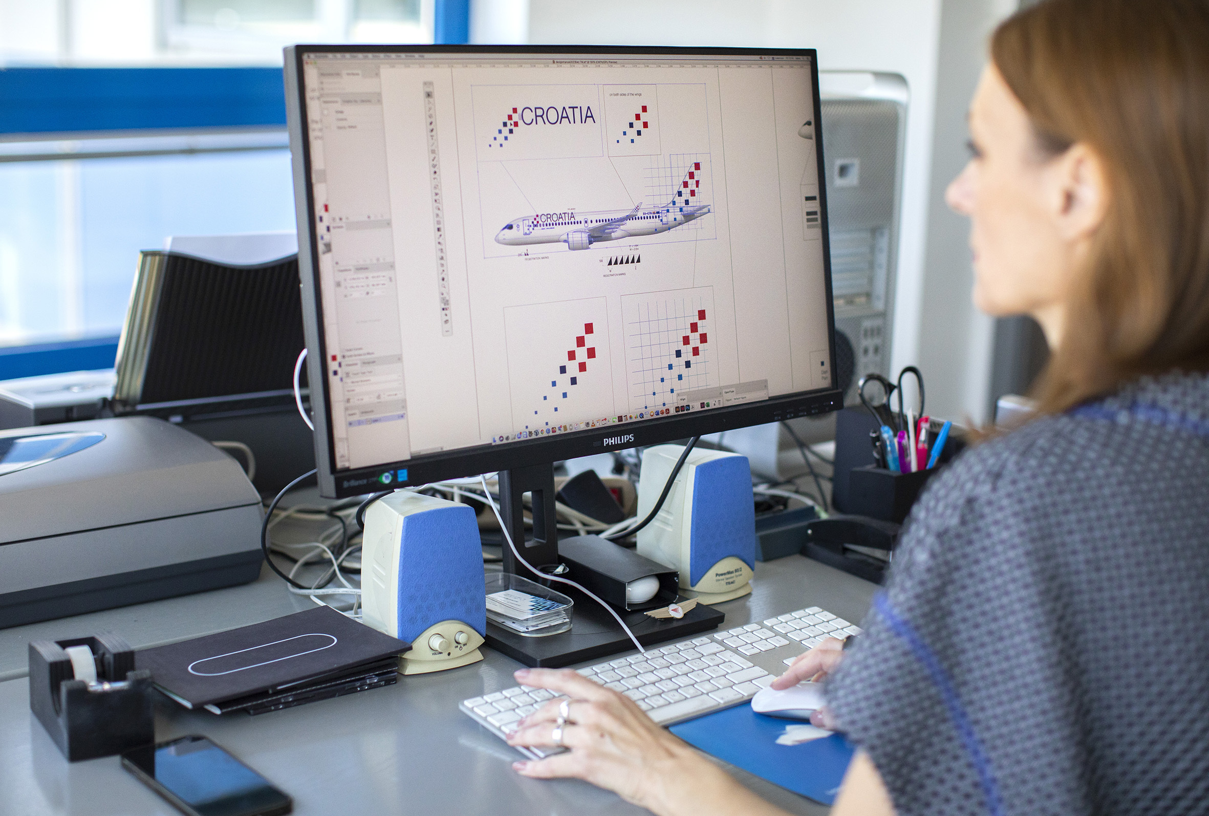 “To se nije dogodilo preko noći. Radim za Croatia Airlines već 30 godina i upoznata sam sa svim problemima koje dobar znak rješava. Ovo rješenje proizašlo je iz dugogodišnje analize, praćenja konkurencije, trendova, potreba u zrakoplovnoj industriji te tržišta. Svejedno se dogodio trenutak koji najviše volim, a to je kada sama sebi kažem: ‘Yes! To je to!’ U jednom trenutku sve se posložilo i znak je takav da funkcionira u svim primjenama. Na repu, krilcima koja se nalaze na krilima, na trupu, horizontalno i vertikalno i koji i bez repa asocira na rep zrakoplova. Crveni kvadrati tvore slovo C, a plavi naglašavaju mediteransko podrijetlo i asociraju na otoke. Cilj mi je bio maksimalno pročistiti i pojednostaviti ideju dinamičnih kvadrata koji asociraju kretanje, a istovremeno ne izgubiti već prepoznatljiv vizualni identitet tvrtke. S redizajnom sam kroz godine išla postupno i malim koracima jer se ljudi vežu za vizualni identitet, pogotovo u industriji zračnog prijevoza. Primjeri iz naše industrije ušpozoravaju da velike zaokreti u dizajnu mogu negativno utjecati na lojalne korisnike. Uporno sam kroz desetljeća išla ka zacrtanim ciljevima i to je sada to. Ne može se više ništa ni dodati ni oduzeti. Sve je sjelo na svoje mjesto”, objašnjava Ivanković.