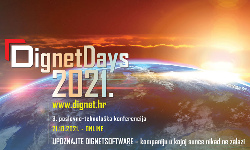 U četvrtak, 21. listopada ove godine, imat ćete priliku sudjelovati na 9. poslovno-tehnološkoj konferenciji DignetDays u organizaciji tvrtke DignetSoftware. Organizatori nisu sretni što će i ove godine konferencija biti online, ali u želji da ostanu odgovorni i pridonesu poboljšanju epidemiološke situacije, donijeli su odluku o online konferenciji.