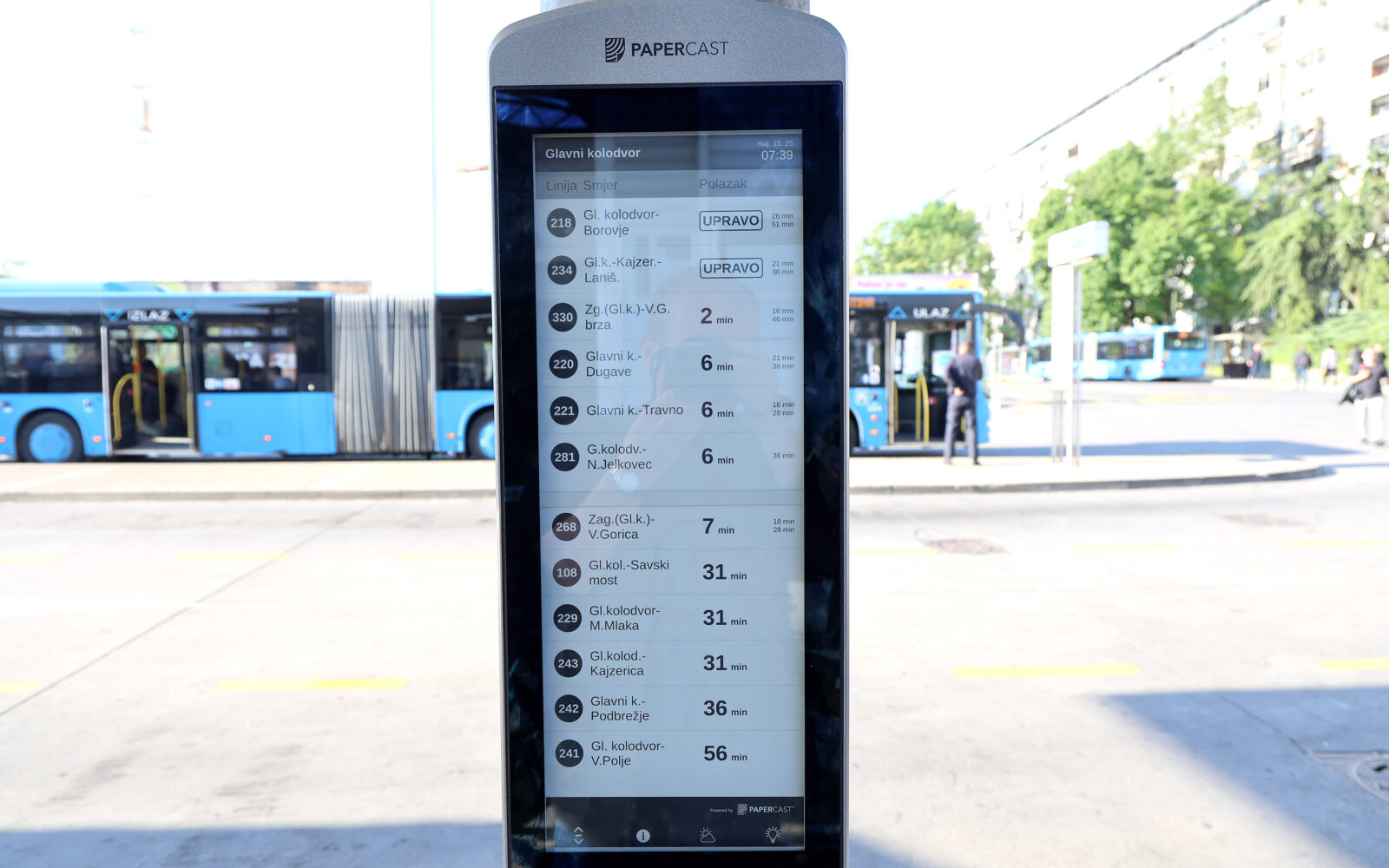 Na autobusnom terminalu kod Glavnog kolodvora, kao i na još desetak frekventnih lokacija diljem grada, postavljeni su novi digitalni ekrani koji putnicima u stvarnom vremenu prikazuju informacije o dolascima i odlascima vozila javnog gradskog prijevoza.