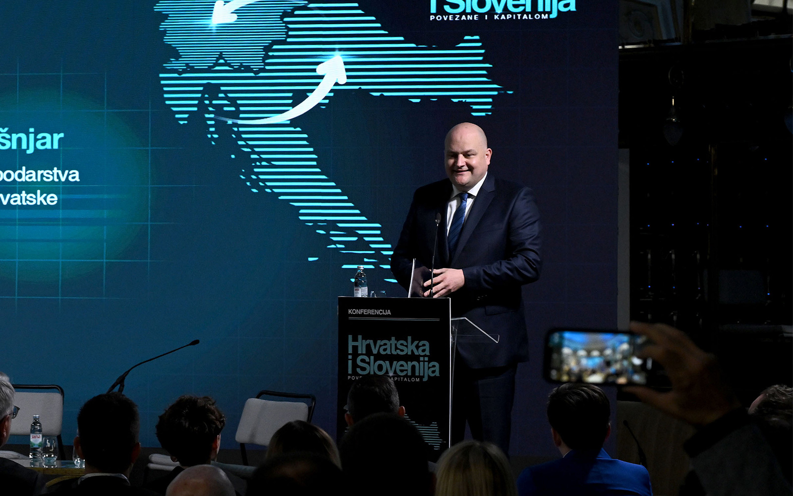 Ante Šušnjar, ministar gospodarstva, okupljenima s konferencije poručuje da je vrijeme za novu razinu suradnje. Matjaž Han, ministar gospodarstva, turizma i sporta Slovenije, nastavlja istom retorikom.