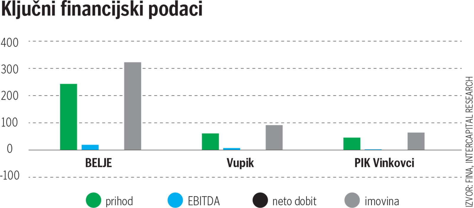 “Belje je specijalizirano za široku paletu proizvoda uključujući proizvodnju mliječnih proizvoda, mesa, žitarica i vina. PIK Vinkovci bavi se biljnom proizvodnjom, stočarstvom i preradom hrane, dok je VUPIK svoje poslovanje usmjerio na biljnu i stočarsku proizvodnju, uz vinogradarstvo i preradu hrane.