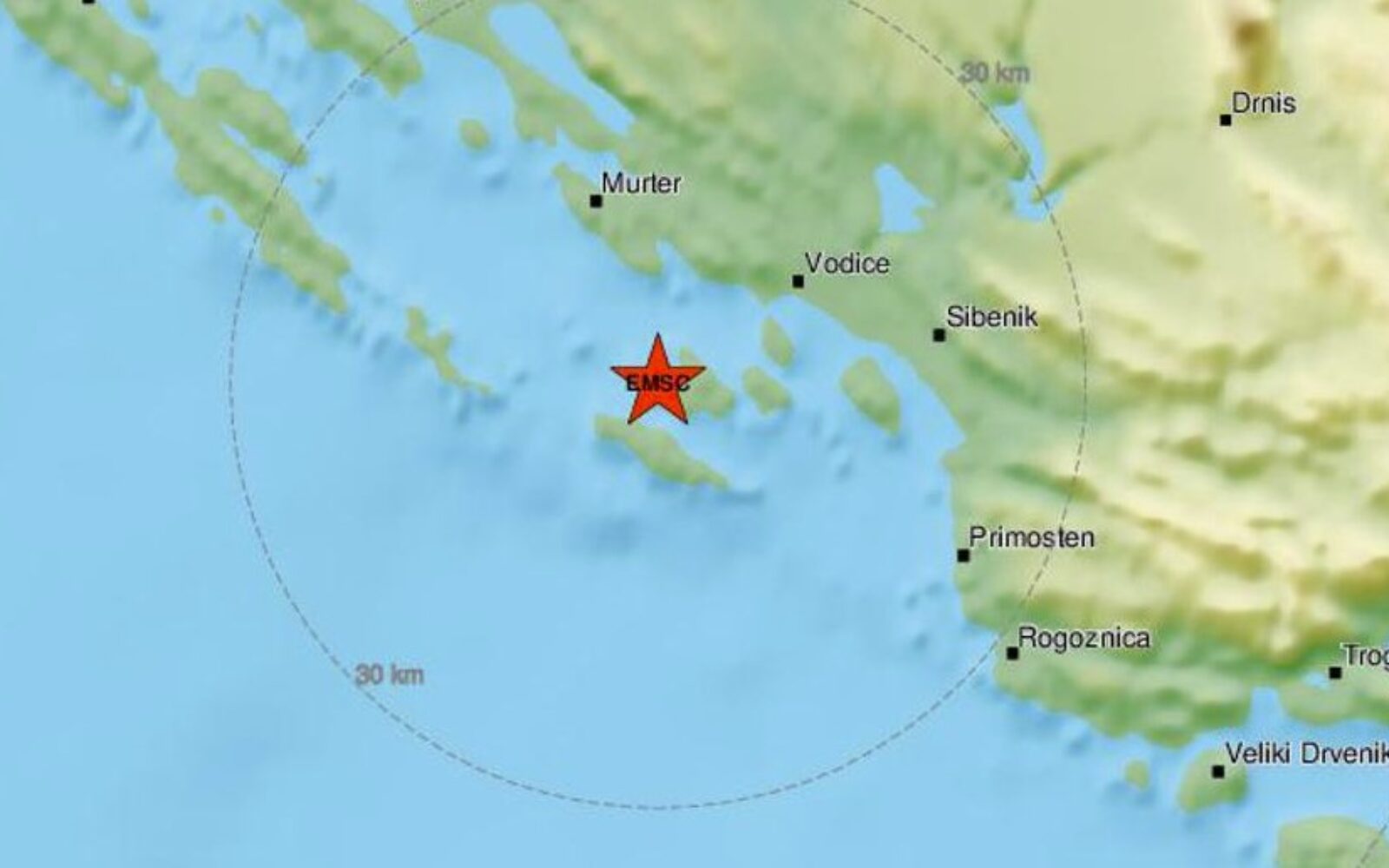 Epicentar potresa bio je u Jadranskom moru, 15 kilometara od Šibenika, a do podrhtavanja je došlo u 9.05 sati.