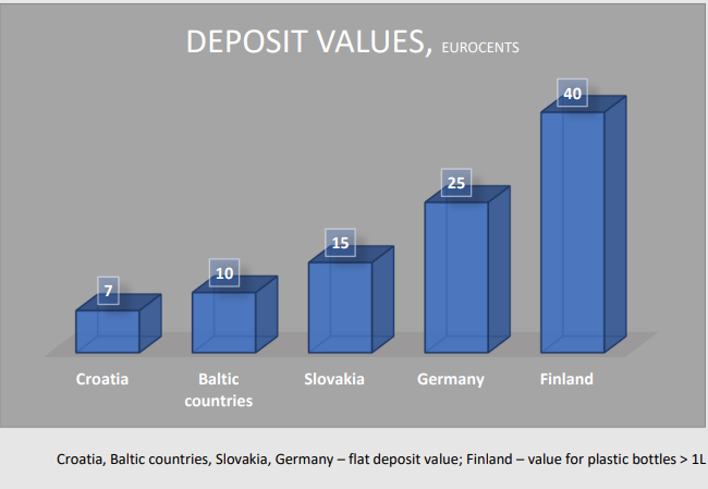 Kako bi se zajamčila visoka stopa prikupljanja i maksimalna količina materijala za recikliranje u lokalnoj industriji, opravdana minimalna vrijednost povratne naknade u Hrvatskoj trebala bi iznositi 0,10 eura.
