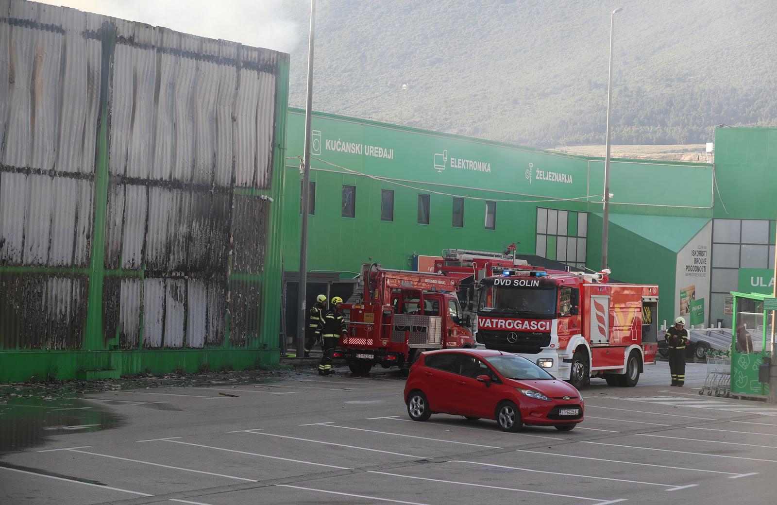 Vatrogasni županijski operativni centar u Splitu izvijestio je da se vatra iz skladišta proširila prema prostoru prodavaonice te je zbog preventivnih mjera isključena struja na objektu koji je zahvaćen požarom.