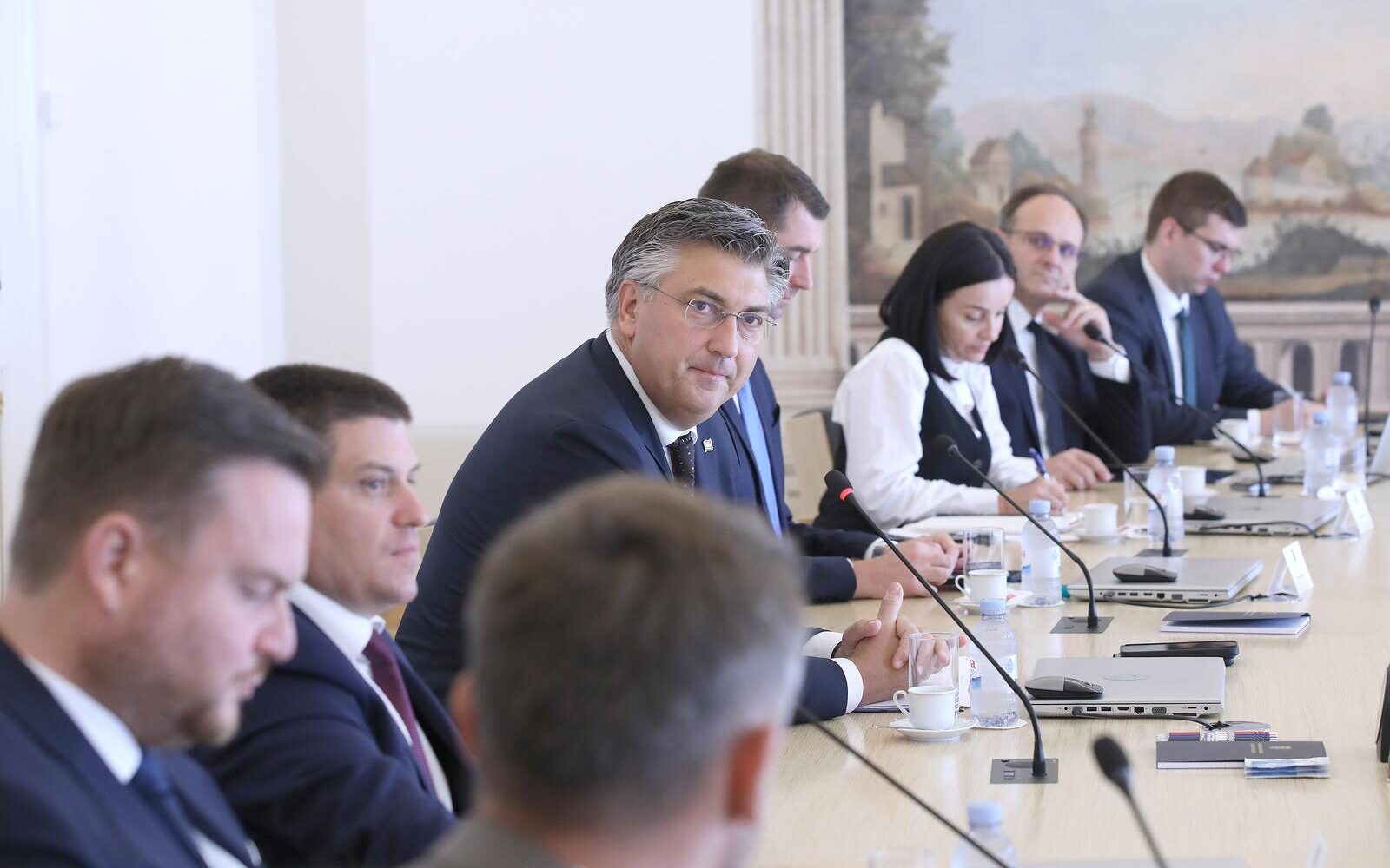 Na sastanku su potpredsjednik Vlade i ministar mora, prometa i infrastrukture Oleg Butković, ministar gospodarstva i održivog razvoja Davor Filipović, ministar financija Marko Primorac, ministrica poljoprivrede Marija Vučković i ministar rada, mirovinskoga sustava, obitelji i socijalne politike Marin Piletić.