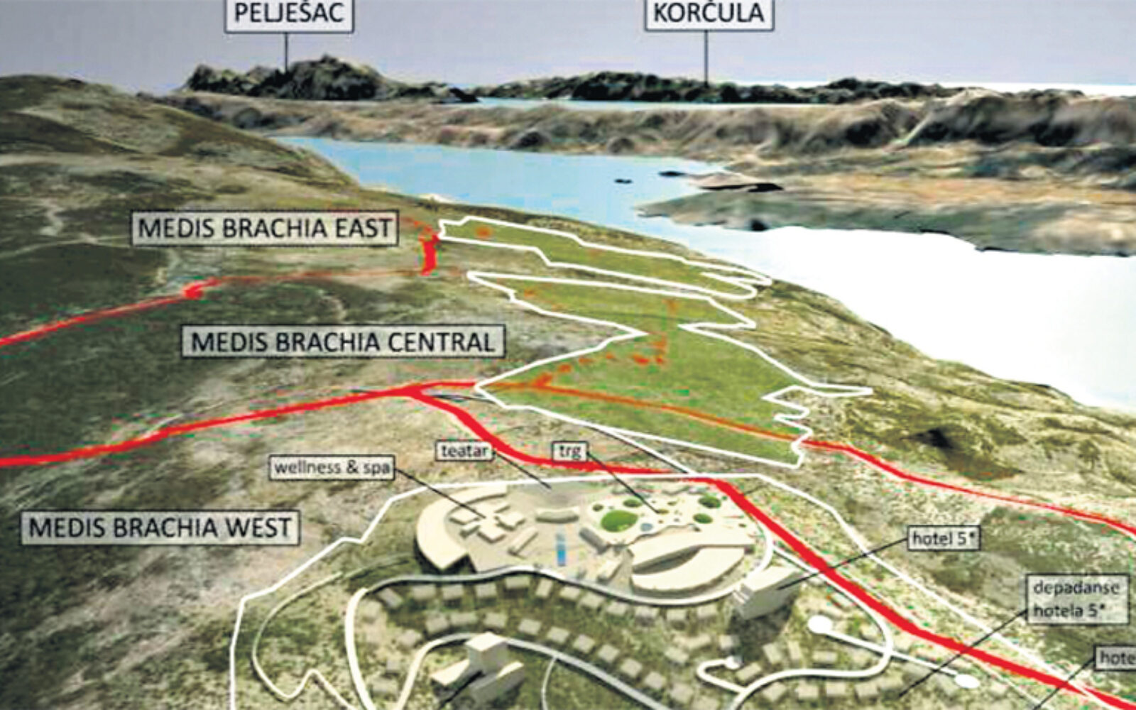 “Prođe li prostorni plan Županiju, a to bi se po našim saznanjima moglo dogoditi do kraja listopada, na potezu je općina Nerežišće, koja treba izraditi svoj urbanistički plan uređenja. Vjerujem da to neće biti problem, jer cijela općina na čelu s načelnikom Lovrom Kuščevićem snažno podržava naš projekt, znajući da on znatno povećava prihode lokalne samouprave i državnog proračuna i kreira nova radna mjesta. Nakon što općina obavi svoje, trebat će nam oko godinu dana za dobivanje građevinske dozvole. Vjerujem da ćemo svu dokumentaciju riješiti da proljeća 2015., a onda počinjemo graditi. Gradimo fazno, plan nam je u pet godina dovršiti najmanje jednu cjelinu, tako da bi u njoj mogli primati klijente već 2020.”, otkriva nam Željko Holik, menadžer projekta pod radnim nazivom Medis Brachia.