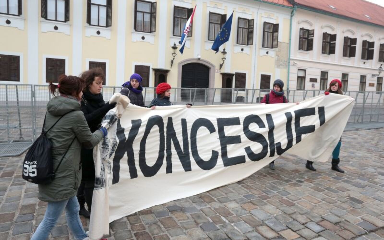 Prosvjedna akcija "Odustanite od koncesije", kojom se traži od Vlade da odustane od davanja autocesta u koncesiju, održana je danas ispred Banskih dvora u organizaciji sindikata i nevladnih udruga.