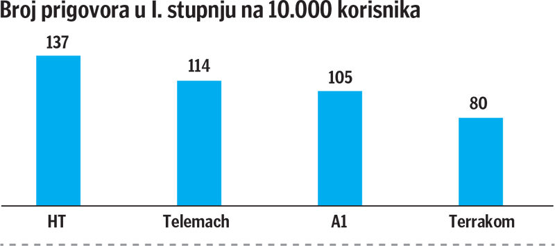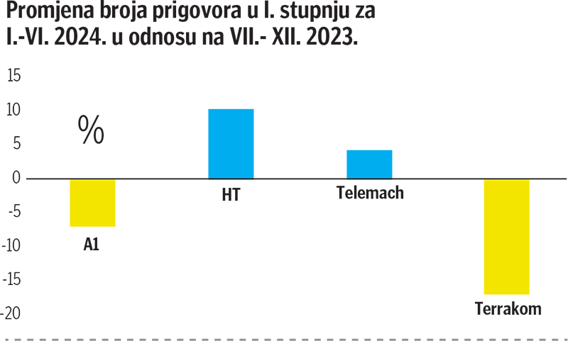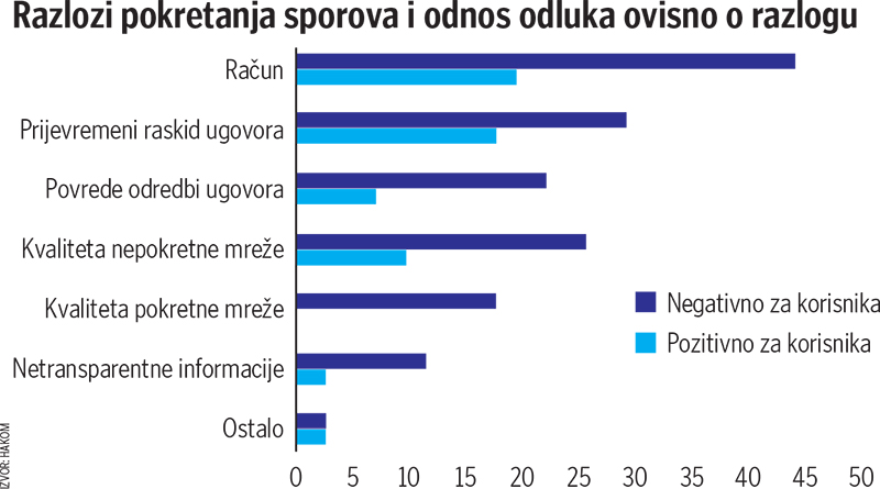 Kako stoji u izvješću, povećali su se sporovi u sva tri stupnja. Valja znati da se prva dva stupnja, prigovora i reklamacija, rješavaju na relaciji korisnik – telekom, dok se treći i konačni stupanj odvija pred HAKOM-om. Odluka HAKOM-ovog povjerenstva je konačna i protiv te odluke nezadovoljni korisnik ili operator, kao strane u postupku, imaju mogućnost žalbe Upravnom sudu.