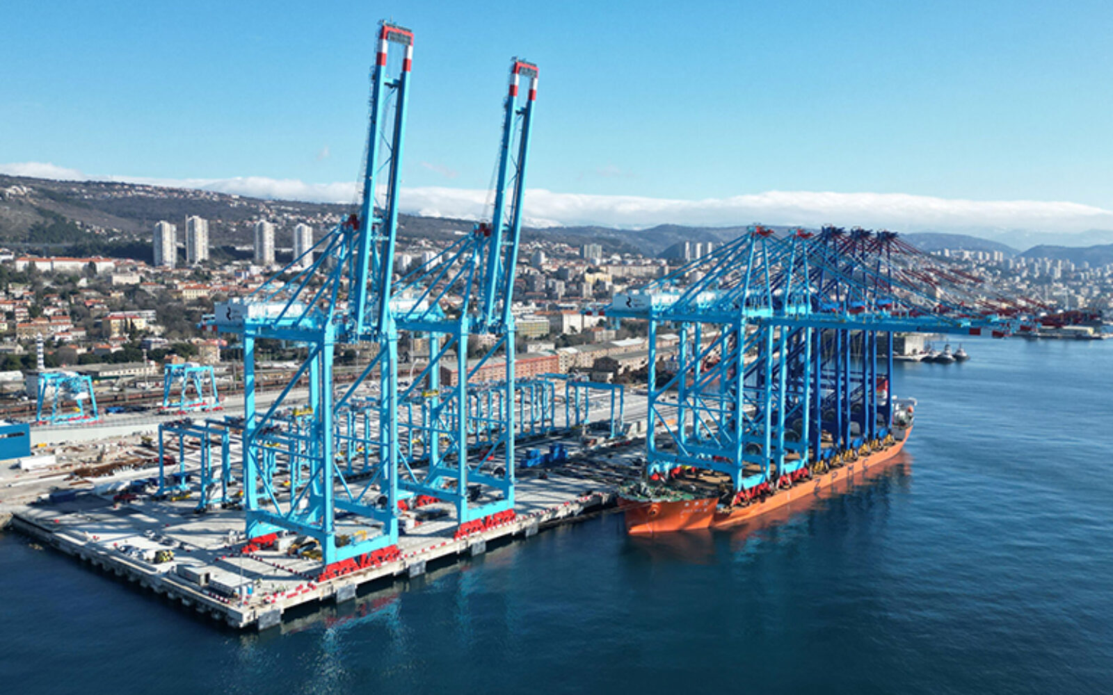 Na terminal Rijeka Gateway stigle su danas posljednje dvije STS (ship-to-shore) dizalice, čime je kompletirana ključna oprema na terminalu, a sam projekt izgradnje terminala je na otprilike 75 posto dovršenosti, poruka je čelnih ljudi Rijeka Gateway.