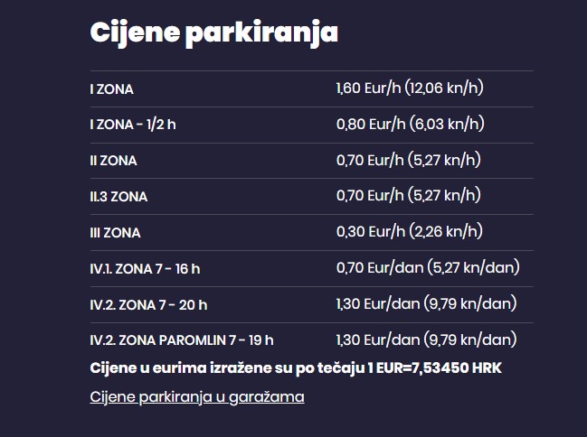 Cjenik sa zaokruženim cijenama objavljen je i na stranicama Zagrebparkinga.