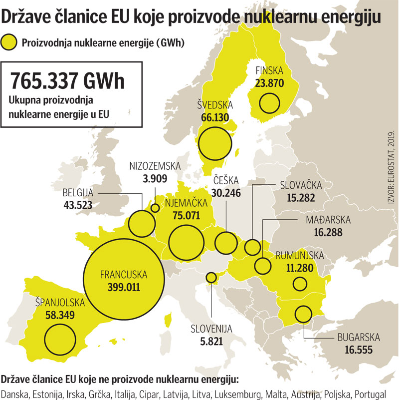 Konačna potvrda toga došla je proteklog mjeseca kada je najprije 10 članica Unije, uključujući i Hrvatsku, zatražilo od Europske komisije da nuklearnu energiju proglasi ‘zelenom’, a odmah koji dan nakon toga je u obraćanju francuskog predsjednika Emmanuela Macrona tamošnjoj javnosti najavljena reindustrijalizacija Francuske kroz zelenu tranziciju tešku 30 milijardi eura, a glavni dio toga projekta je plan o izgradnji šest novih nuklearnih reaktora.