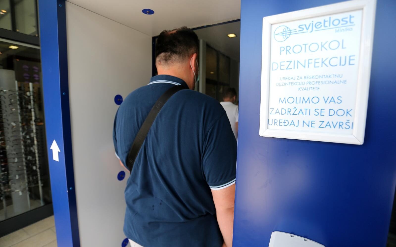 Izgleda kao detektor za metal, no ima posve drukčiju ulogu. Prvi dezinfekcijski tunel u Hrvatskoj predstavljen je danas u klinici Svjetlost u Heinzelovoj, a funckionira sasvim jednostavno. Sve što je potrebno je stati unutra, a raspršivač ugrađen u šarke “tunela” automatski prska dezificijens po cijelom tijelu. A cijeli postupak traje sedam sekundi. Smješten je na ulazu klinike Svjetlosti a uskoro će, kaže za Večernji list osnivač i ravnatelj Nikica Gabrić, stići i u ostale njene podružnice u Hrvatskoj i Europi.