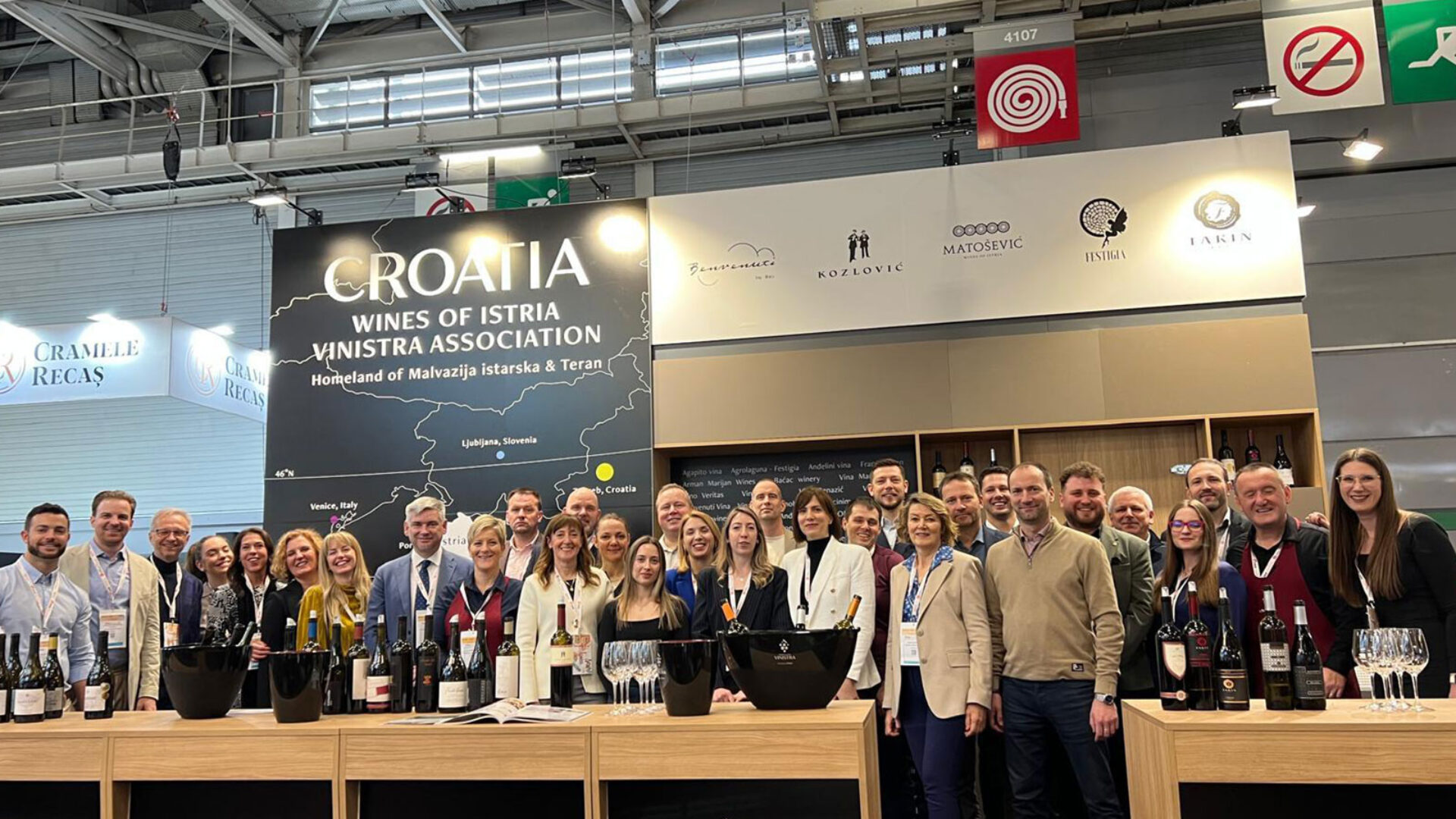 Na štandu u paviljonu 4 predstavilo se 13 istarskih vinarija: Fakin, Medea, Kozlović, Clai, Benvenuti, Meneghetti, Matošević, Rossi, Deklić, Pervino, Festigia, Damjanić i Kabola/Vinistra