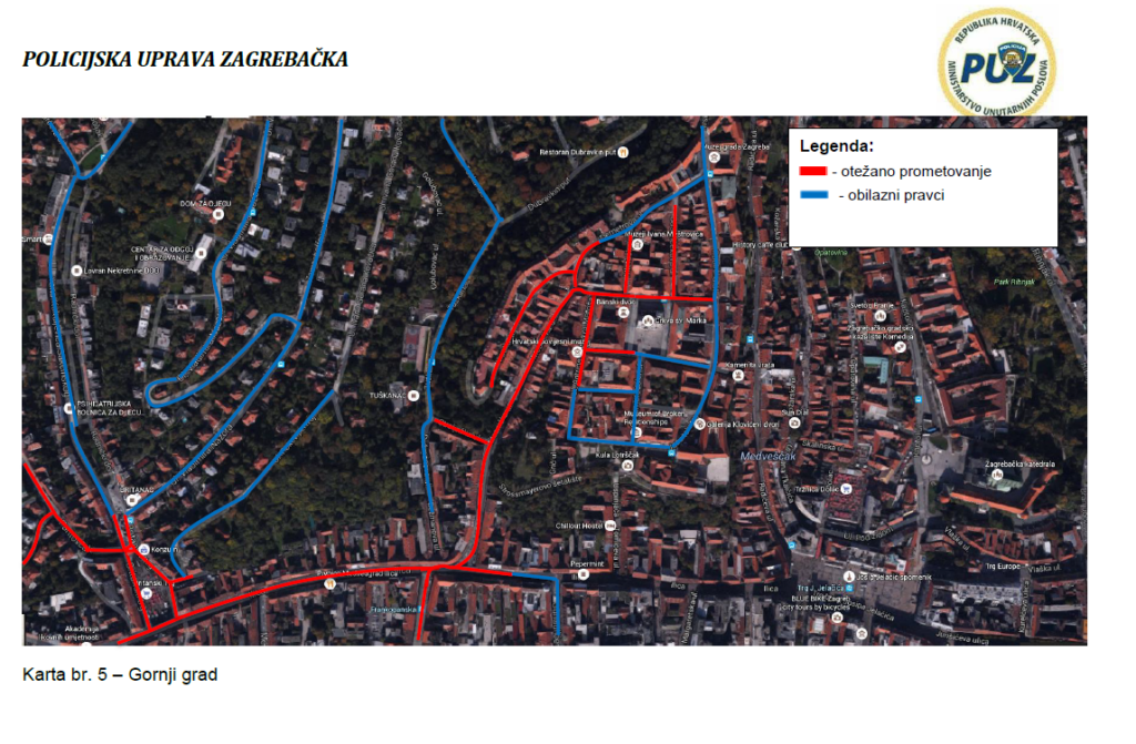“Zbog provedbe posebnih mjera sigurnosti, uspostavit će se privremena regulacija prometa te tom prilikom može dolaziti do povremenog kratkotrajnog prekidanja odvijanja prometa uz nazočnost policijskih službenika.
