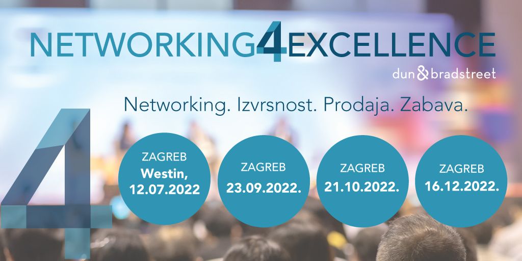 Nova serija od 4 eventa pod nazivom Networking4Excellence u organizaciji Dun & Bradstreet Hrvatska ima za cilj okupiti najuspješnija poduzeća u Hrvatskoj. Hrvatski poduzetnici, posebno oni najbolji, imaju mogućnost doći na Networking event i pronaći nove poslovne partnere i poslušati zanimljiva predavanja i inspirativne priče.