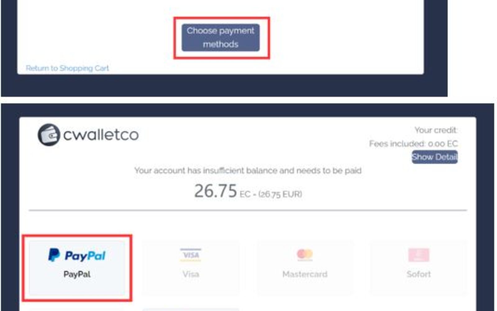 Odaberite CWALLETCO kao platformu plaćanja i nastavite na sljedeći korak.
