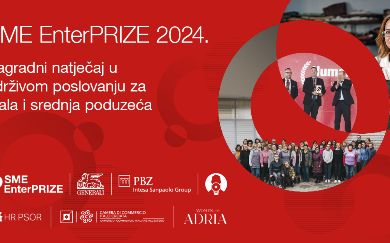 Na natječaj se mogu prijaviti MSP-ovi: klijenti Generali osiguranja, klijenti Privredne banke Zagreb, članovi udruge Glas poduzetnika, članovi Hrvatskog poslovnog savjeta za održivi razvoj, članovi Talijansko hrvatske gospodarske komore i članovi Women in Adria. Oni će svojim primjerima održivog poslovanja konkurirati u dvije kategorije: zajednica i okoliš.