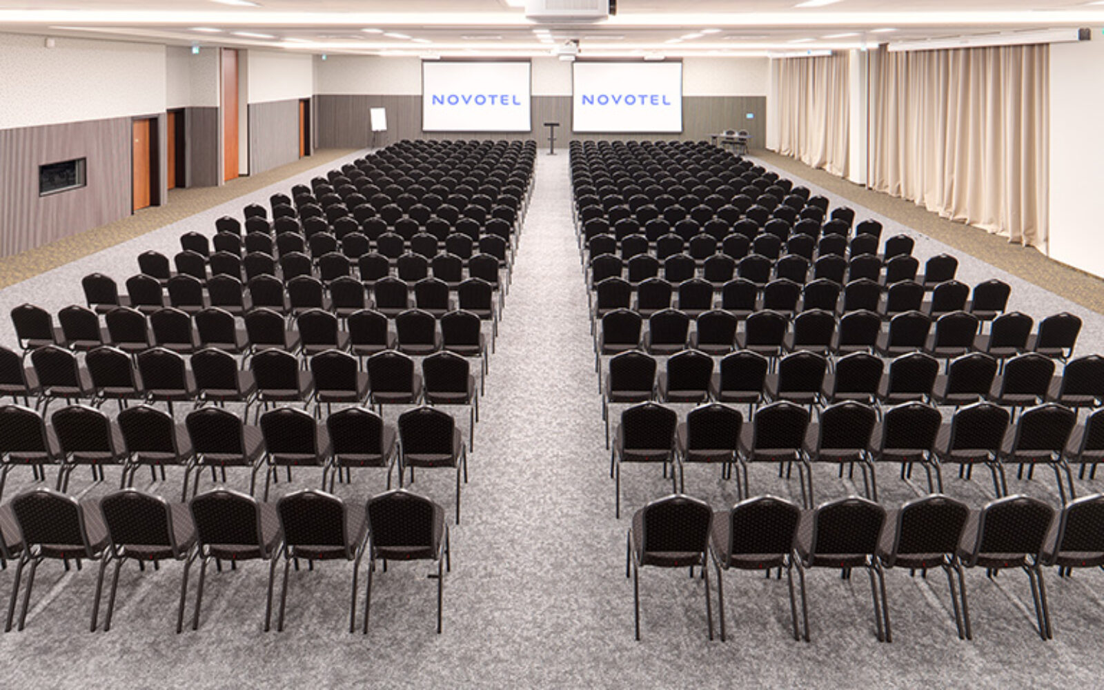 Hotel ima šest multifunkcionalnih konferencijskih dvorana opremljenih najnovijom audiovizualnom tehnologijom i kapacitetom do 550 sudionika. Interijer je inspiriran prirodnim materijalima i umirujućim tonovima, stvarajući osjećaj topline i dobrodošlice koji karakterizira brend Novotel.