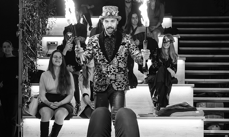 Zašto poseban? Zato što ovdje publika nije samo promatrač, već postaje dio priče. U intimnoj atmosferi restorana Papel, u svega nekoliko metara od vas, umjetnici iz Traumatic Arts Entertainmenta stvaraju svijet pokreta, svjetla i adrenalina. Akrobati na svili i lancima, plesači, cirkuski performeri i majstori vatre pretvaraju običnu večer u dvosatno putovanje kroz emocije – od zadivljenosti do uzbuđenja.