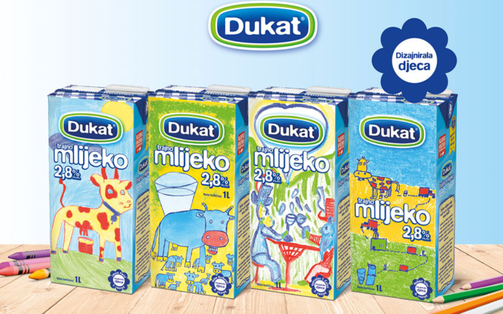 Ograničeno izdanje Dukat trajnih mlijeka u posebnim, razigranim pakiranjima koja su oslikala djeca stiglo je na police trgovina diljem Hrvatske.