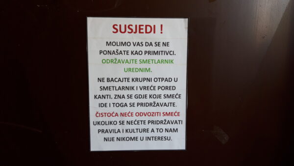 Naime, upućen je oštar apel stanarima da se ne ponašaju kao primitivci, jer Čistoća neće odnositi smeće ako se ne pridržavaju pravila.