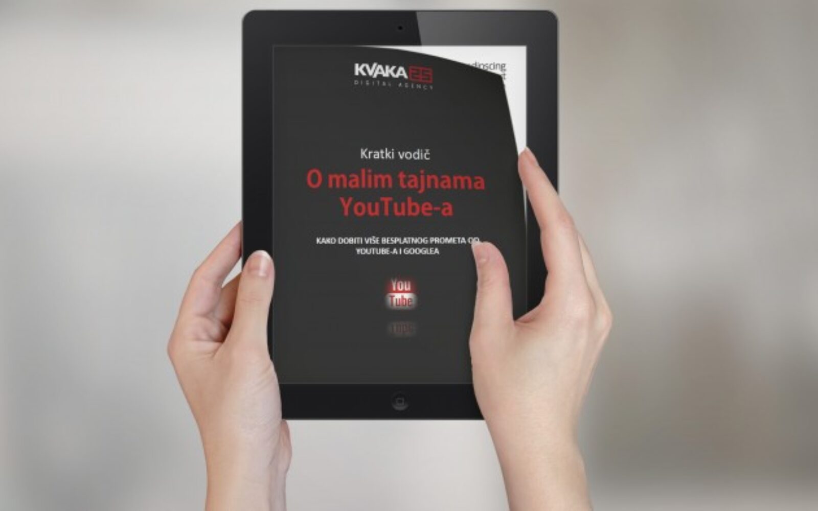 Zaprešićka digitalna agencija Kvaka25, specijalizirana za digitalni i mobilni marketing, ovog je tjedna objavila besplatni kratki vodič nazvan O malim tajnama YouTube-a. Radi se o priručniku uz čiju se pomoć od navedene platforme može dobiti najviše besplatnog prometa.