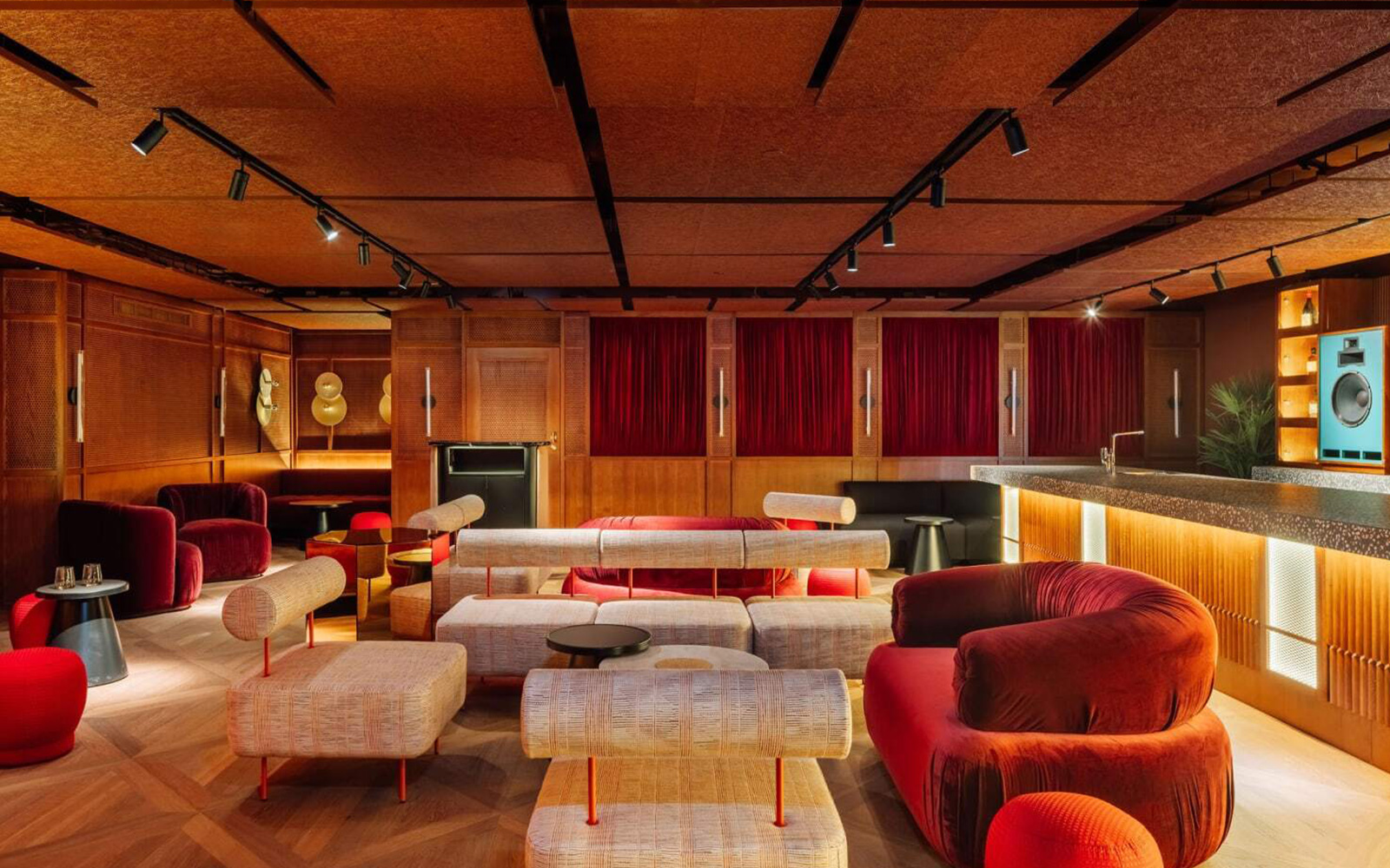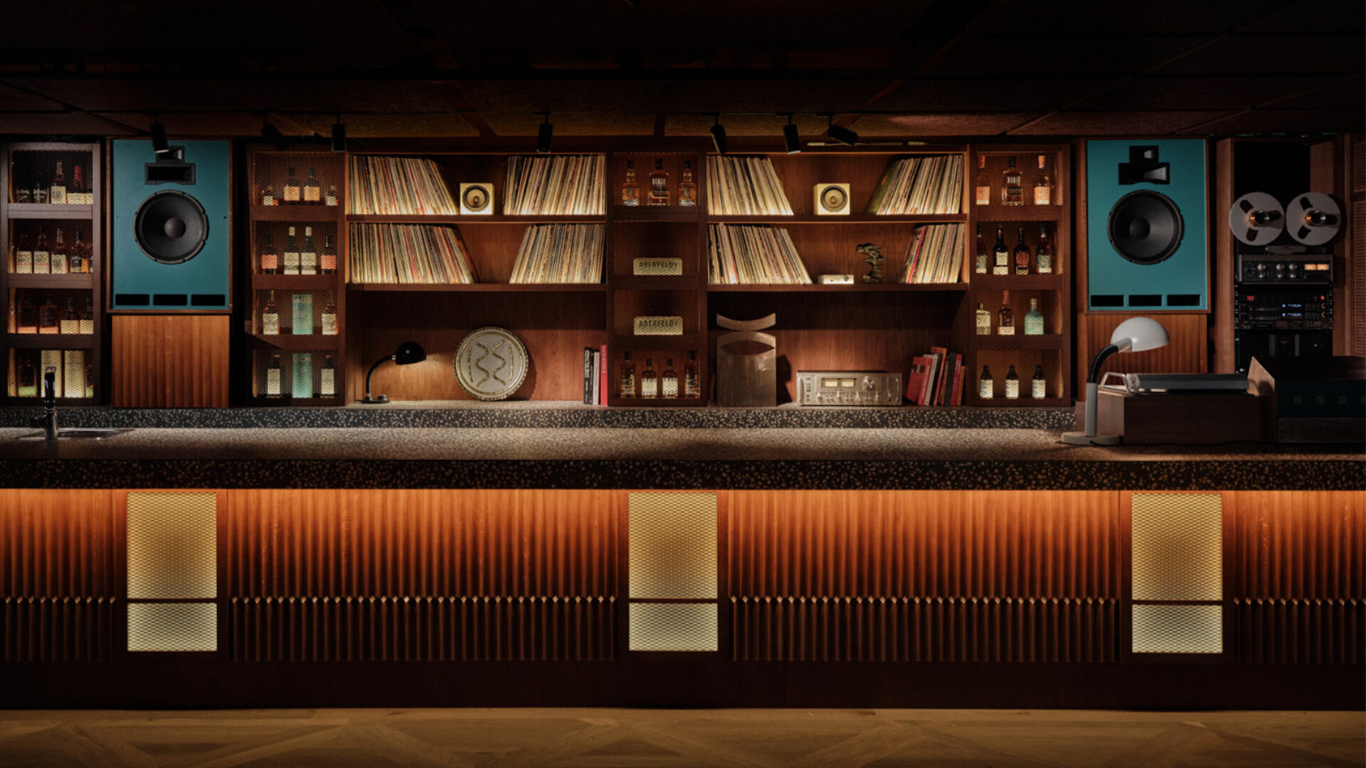 Interijer prate tamno drvene površine i minimalistički detalji koji u prostor unose dozu smirenosti i ugode. Umjesto dj-a koji bi puštao glazbu u baru, gosti zapravo mogu odabrati glazbu iz bogate kolekcije gramofonskih ploča iz skoro svih era i žanrova. Bar je opremljen visokokvalitetnim audio sistemom američke marke Klipsch poznatoj po dugogodišnjoj tradiciji vrhunskog zvuka. Također glazbeni kutak krasi ručno rađeni četverokanalni rotary mixer barcelonskog boutique proizvođača Can Electric te njemački EMT 948 vintage gramofoni koji su se nekoć koristili u legendarnom londonskom noćnom klubu Plastic People.