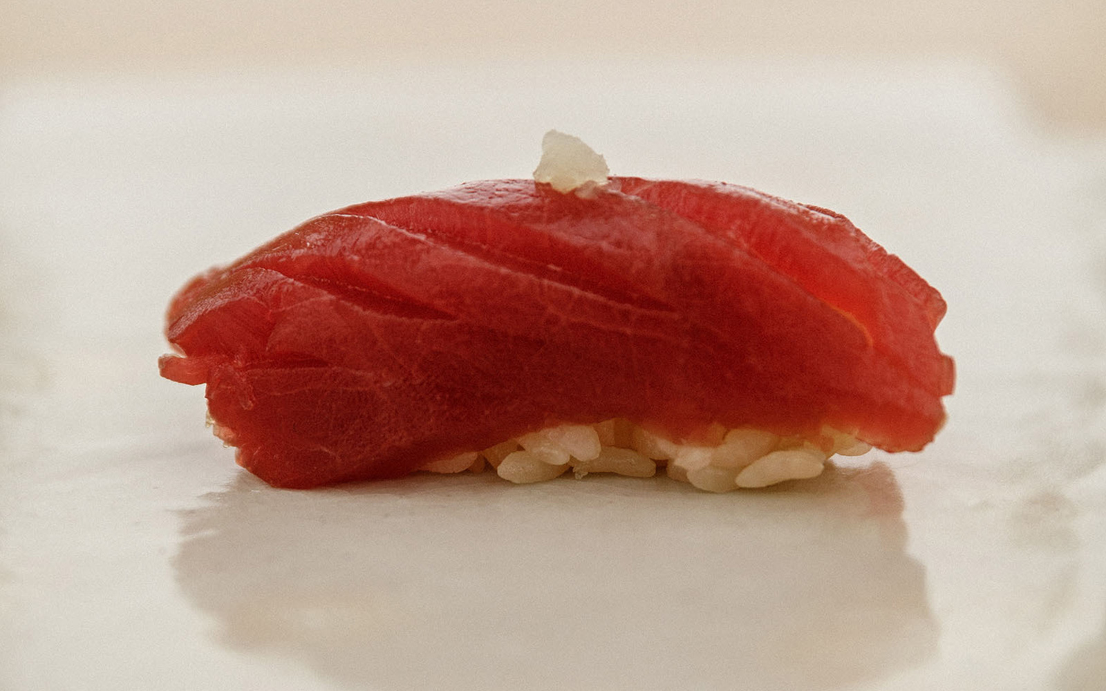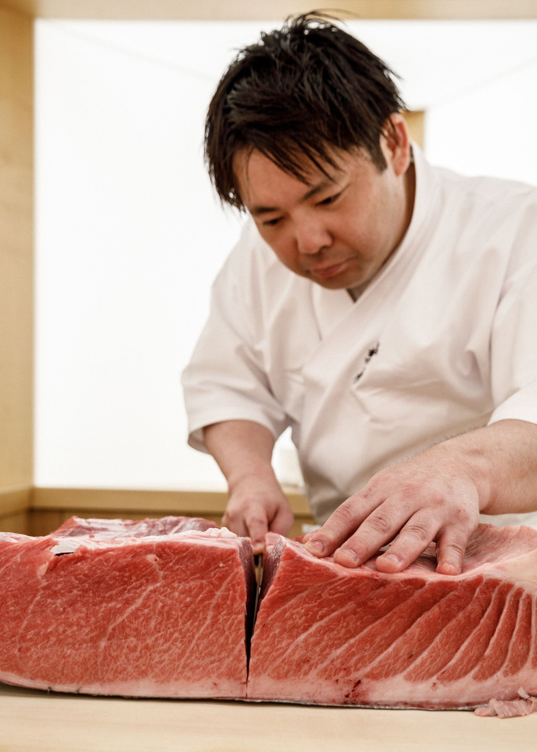 S druge strane sushi šanka nalazi se radna površina chefa Yoshinage, čije će “omakase” umijeće iskusiti deset “sretnika”. Nakon predigre od četiri predjela, ceremonijalni “omakase” nastavlja se s jastogom kuhanim na pari, hobotnicom, zatim 12 nigirija, uključujući trilogiju crvene, polumasne i masne tune, dok se pred završnicu opet pojavljuje jastog kao glavni sastojak i temeljac u miso juhi. Dvosatna simfonija zaključuje se trilogijom matcha sladoleda različite gustoće koje je kreirao legendarni francuski chef Alain Ducasse. Cijena “omakase” menija je 330 eura, dok će uparivanje sa sakeom biti između 75 i 110 eura.