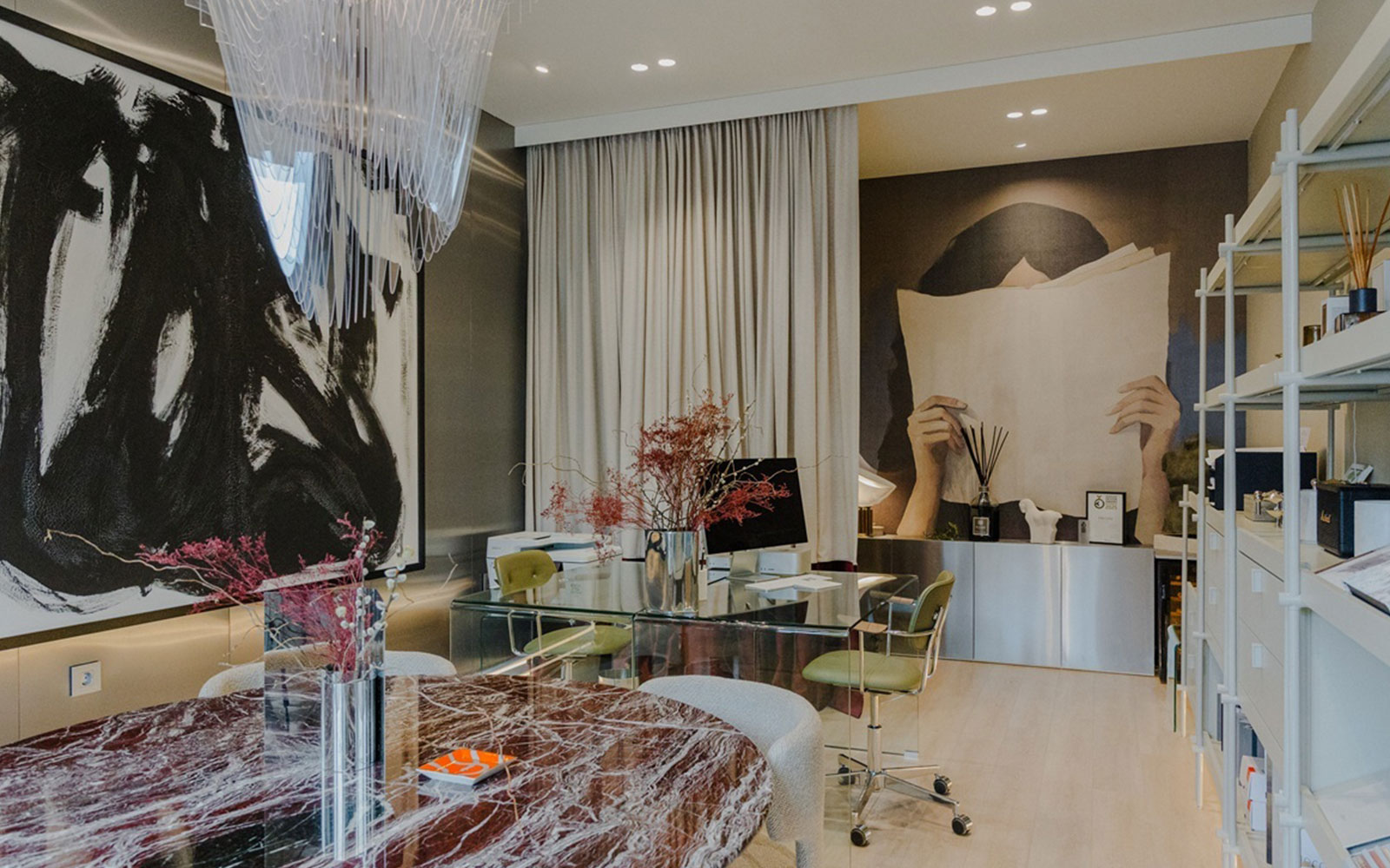 Sjedište studija u Zagrebu dodatno oslikava takav pristup. Ured je koncipiran kao “showroom” u kojem se klijentima prezentiraju materijali, teksture i rješenja koja se kasnije implementiraju u projekte. Estetski standardi prostora, od dizajnerske rasvjete do luksuznih materijala, reflektiraju pozicioniranje studija u segmentu premium interijera.