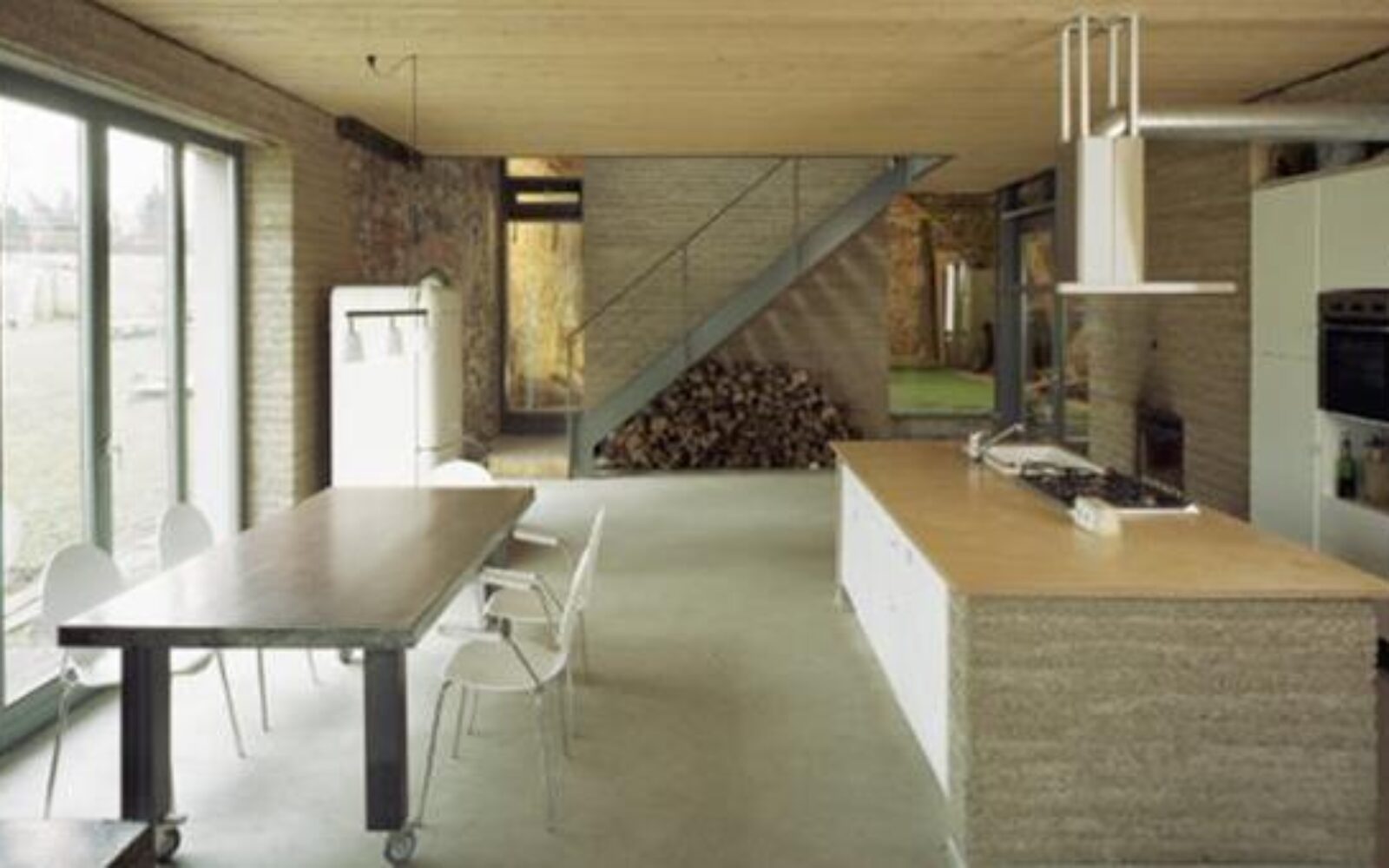 Renoviranje staje proveo je arhitektonski studio Roswag Architecten koji je osmislio i "dodatak" originalnoj kamenoj strukturi u obliku novih prostorija od zbijene zemlje. Struktura od zbijene zemlje uz novu izolaciju od konoplje modernizirala je kameni dio kuće, ali bez gubitka na autentičnosti.