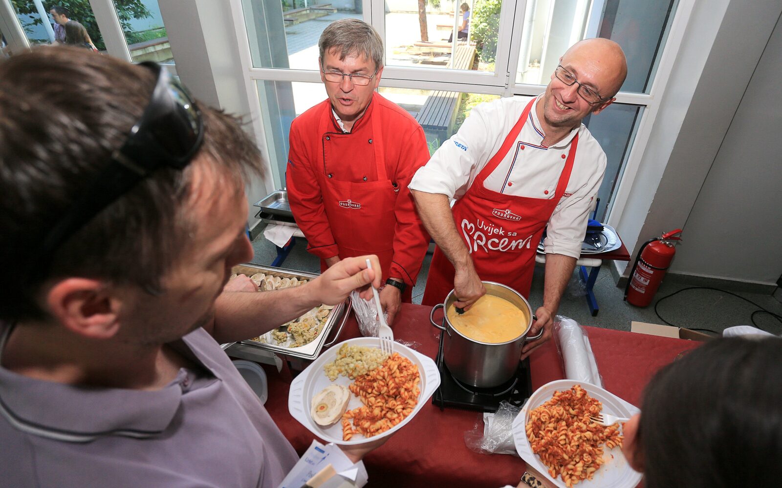 Dodaje da su prezentirali žitarice koje su sada u trendu, a s obzirom da se na Poslovnom uzletu okupilo gotovo 300 ljudi, to je bila dobra prilika da se okupljene informira o zdravom načinu prehrane. „Tu su i nove juhe bez bojila i pojačivača okusa s prirodnim sastojcima. Juhe mijenjamo ovisno o destinciji, pa tako na jadranskoj obali prezentiramo juhe od šparoga, cvjetače i brokule, dok je ovdje na kontinentu bila bundeva kao poznata lokalna namirnica“, ističe Podravkin chef.