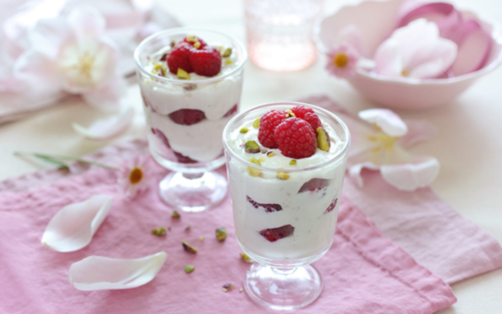 1. Prašak za puding pomiješajte sa šećerom i malo mlijeka. Preostalom mlijeku dodajte slatko vrhnje, zagrijte do vrenja, maknite s vatre i umiješajte pripremljeni puding. Vratite na vatru i kuhajte 1-2 minute. 2. Puding izlijte u drugu posudu, prekrijte prozirnom folijom i pustite da se ohladi na sobnu temperaturu. Zatim umiješajte mascarpone sir da dobijete kremu. 3. U čaše za posluživanje (više, uske, Mason) stavljajte naizmjenično kremu i maline. 4. Slasticu ukrasite malinama, pospite pistacijama i dobro rashladite u hladnjaku prije posluživanja.